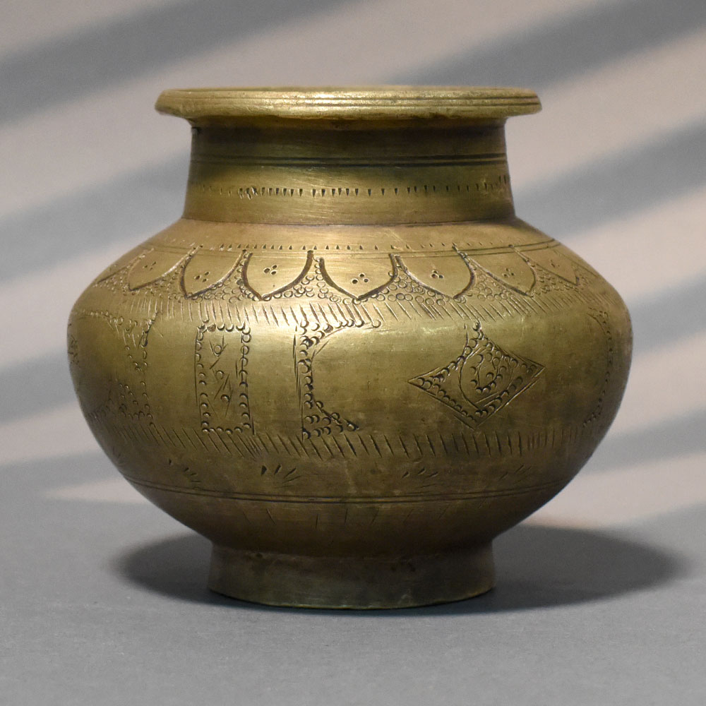 - Handcrafted solid brass engraved ritual pot