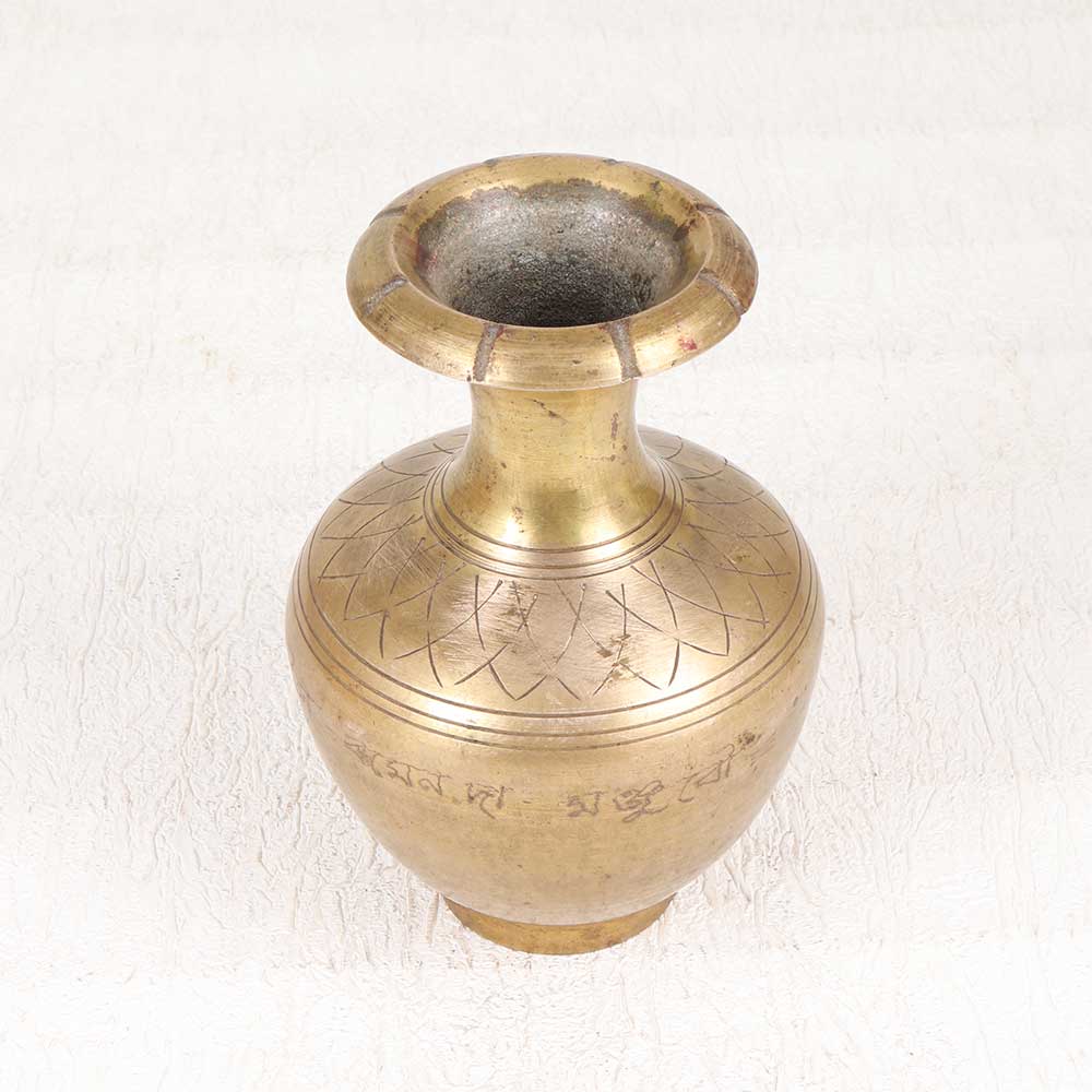 Add a touch of antique charm to your home with this stunning engraved brass flower pot. Lovingly crafted from solid brass, this pot features an intricate floral engraving that will elevate any space. The warm, golden tones of the brass make a striking statement whether placed on a tabletop, mantel, or bookshelf. With its vintage-inspired design, this pot is ideal for displaying your favorite fresh-cut or faux flowers and plants. For those who appreciate the unique, handcrafted home decor, this engraved brass flower pot is sure to delight. The level of detail in the engraving gives each pot a one-of-a-kind artisanal feel. Give your home an instant style upgrade with this eye-catching accent piece.