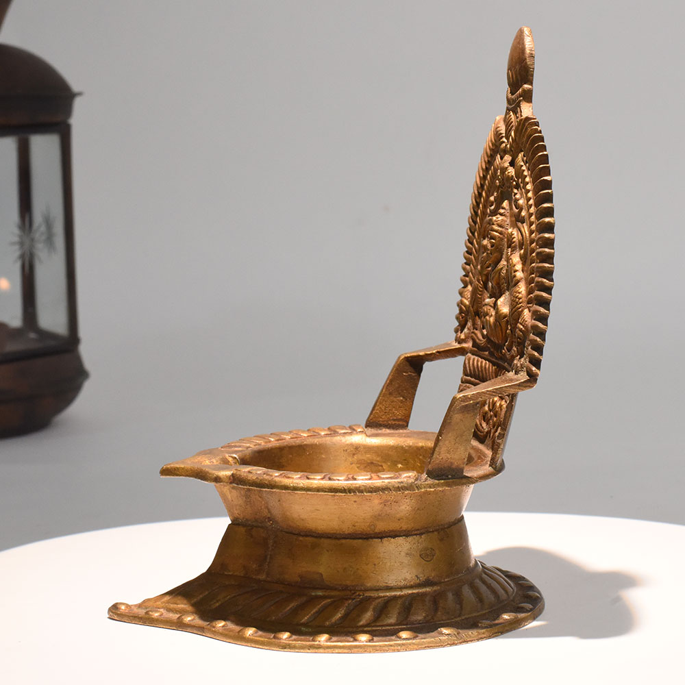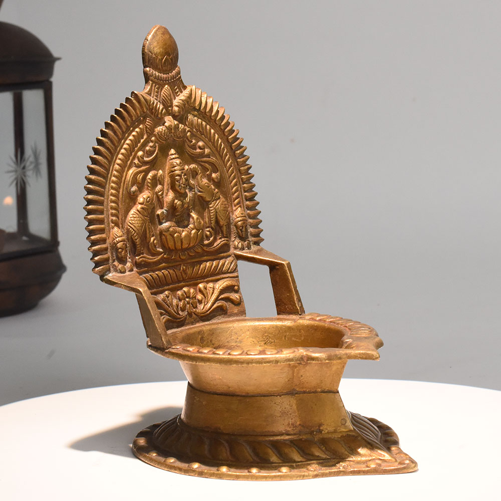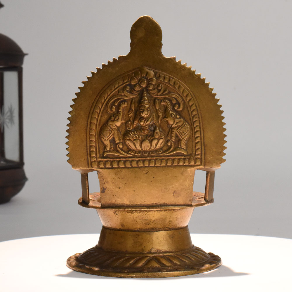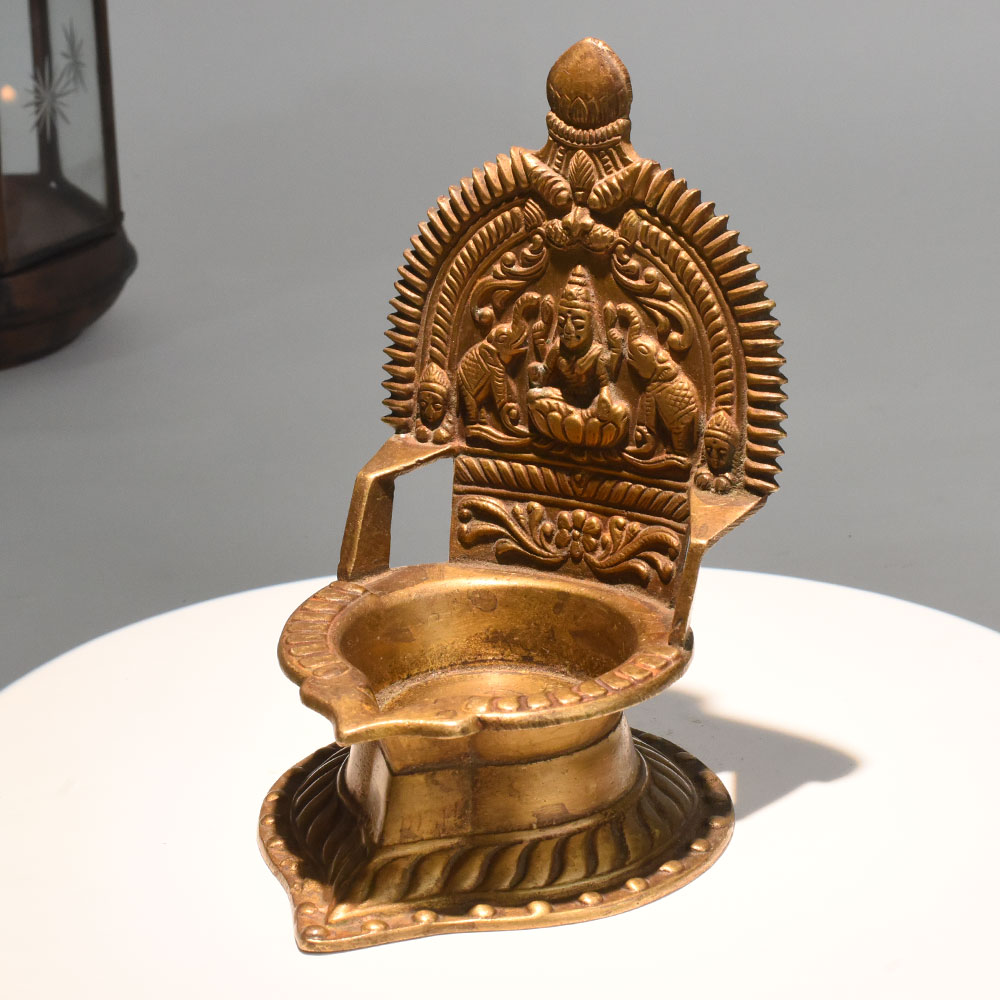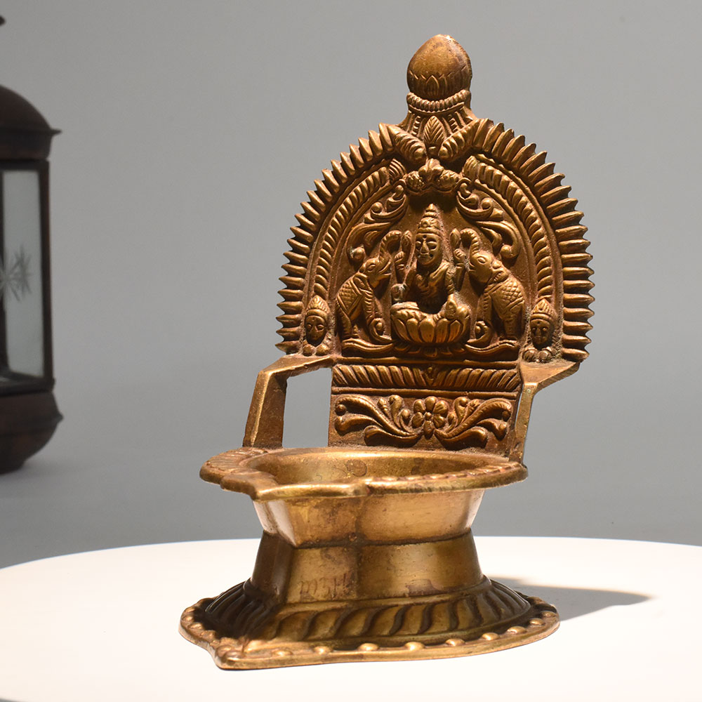 - Handcrafted brass diya with Lakshmi and elephants