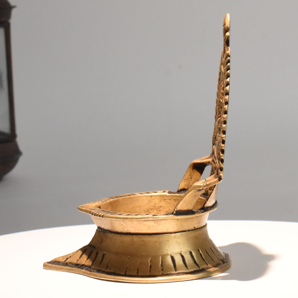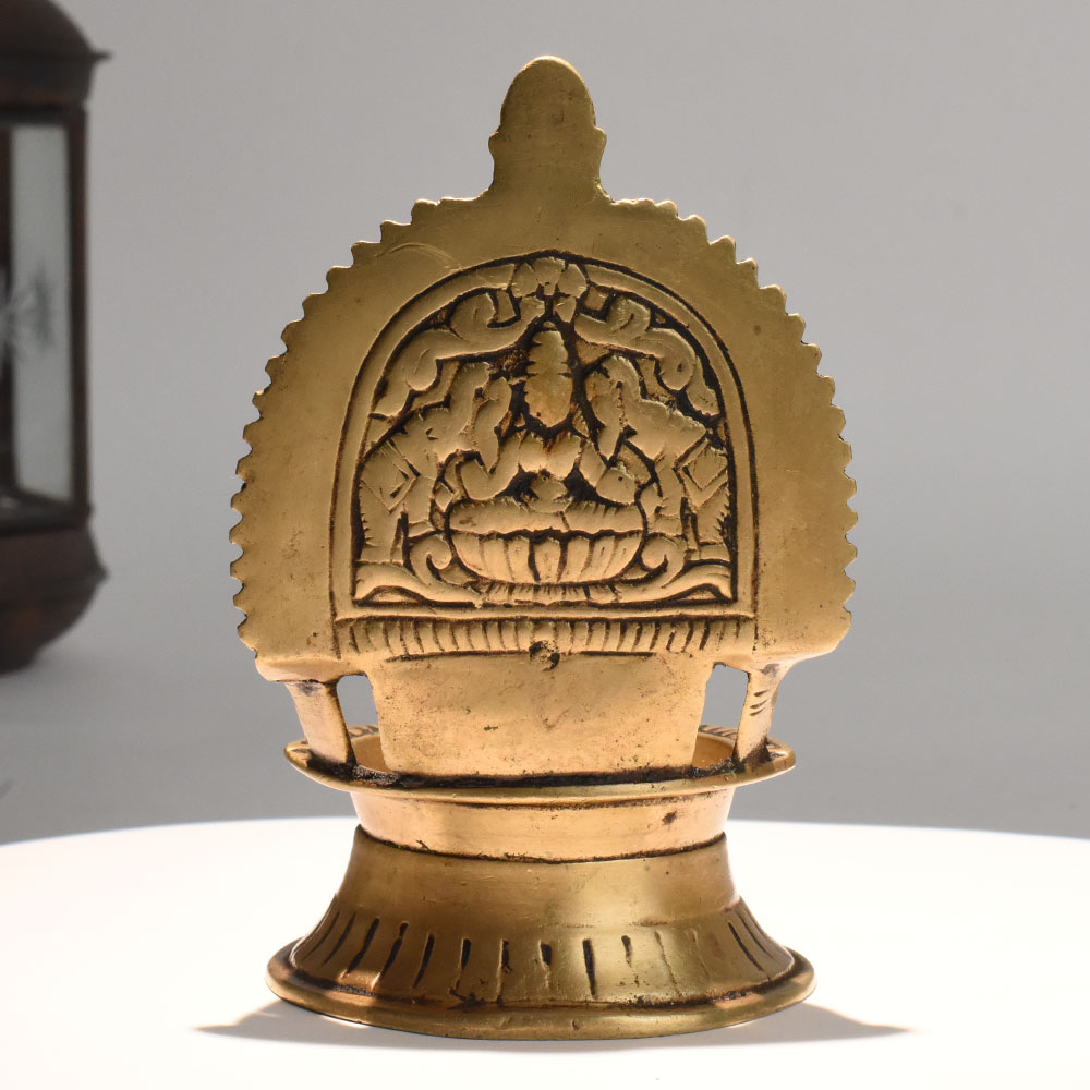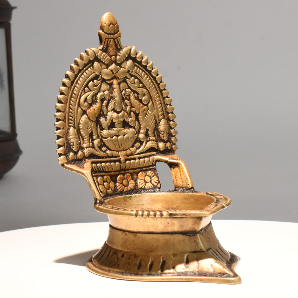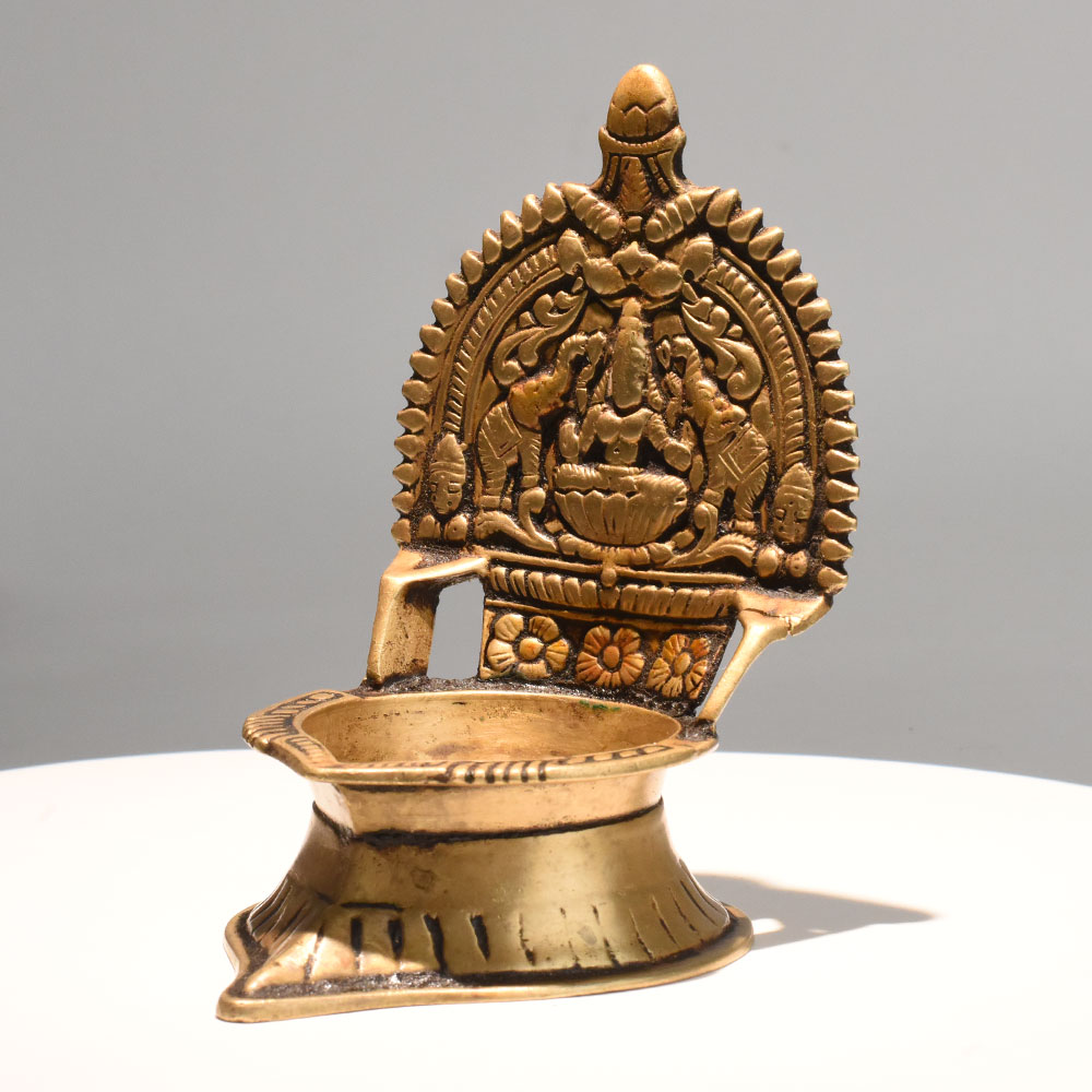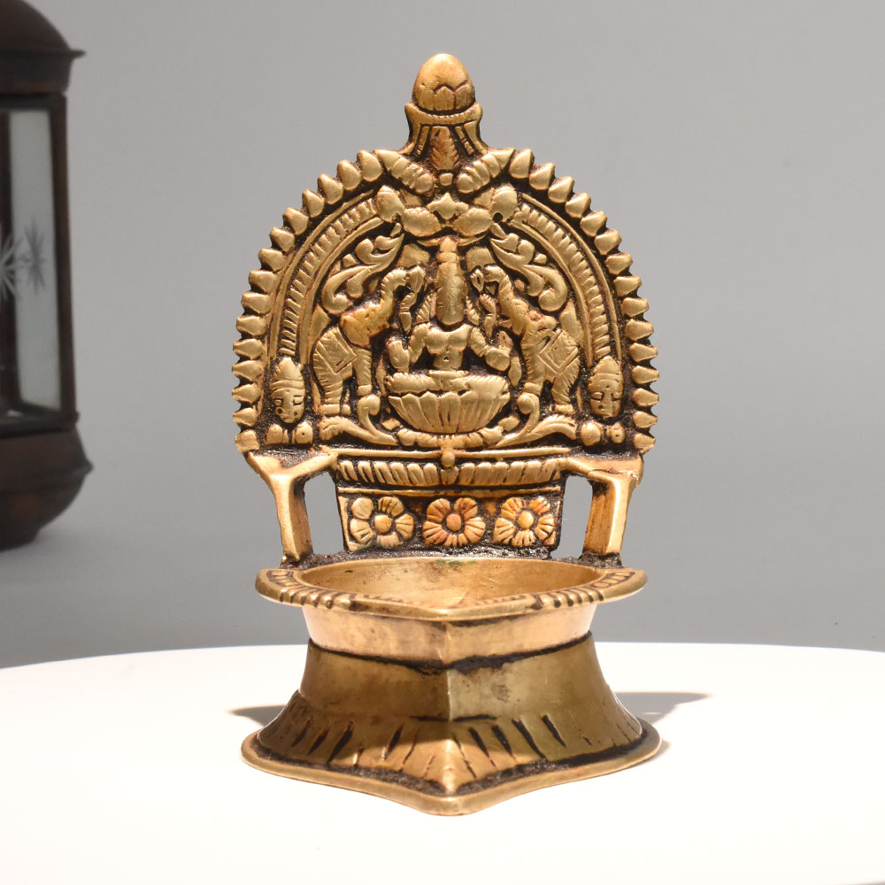 - Handcrafted brass oil lamp with Gajalakshmi motif