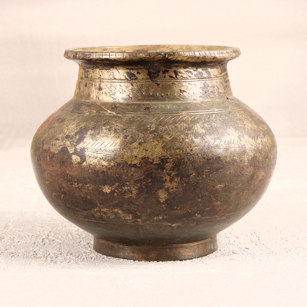 Buy a Vintage Brass Holy Water Pot online from our website and get a hassle free delivery right at your doorstep. Handcrafted by highly skilled artisans from the serene hills of Himachal, this exquisite piece is a testament to India's rich heritage. The pot is adorned with intricate carvings and boasts a lustrous antique brown finish, adding a touch of opulence to your prayer space, havan, or any auspicious occasion. Made from high-quality Brass, this pot is not just a vessel for holy water but also a stunning accent for floral arrangements. Its versatile design makes it suitable for display in homes, offices, restaurants, hotels, or cafes, enhancing the ambiance with its vintage charm. A collector's dream, this artisanal creation is a unique addition to any vintage collection. Celebrate the artistry of Indian craftsmanship and share the gift of divine beauty with your loved ones on special, festive, or auspicious occasions.