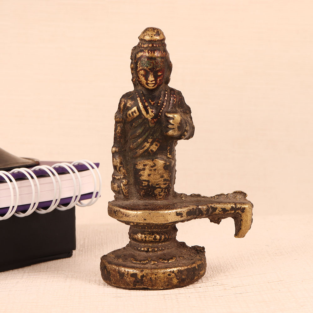 A Yoni Stand with Lord Shiva which is a masterpiece that seamlessly blends artistry, spirituality, and craftsmanship. Handcrafted by talented Indian artisans, this divine creation boasts a rich antique brown finish that exudes timeless charm. Crafted from high-quality brass, it's a symbol of enduring quality and devotion. The Yoni Stand with Lord Shiva is more than just a decorative piece, it's a symbol of reverence and spirituality. Its intricate design and attention to detail make it a focal point in any space. Whether you place it in your home, office, restaurant, hotel, cafe, or shop's prayer room, it radiates an aura of serenity and sanctity, fostering an atmosphere of peace and devotion. This magnificent piece is not limited to religious settings, it's a true work of art that can elevate any decor style. Collectors will appreciate its antique allure, making it a valuable addition to vintage collections. Moreover, the Yoni Stand with Lord Shiva makes for an unforgettable gift for your loved ones on special, festive, or auspicious occasions. It embodies a profound sense of spirituality, love, and culture, making it a gift that resonates deeply with the heart and soul.