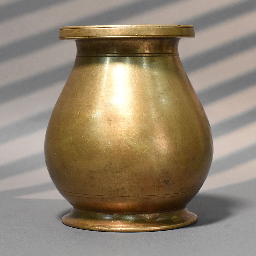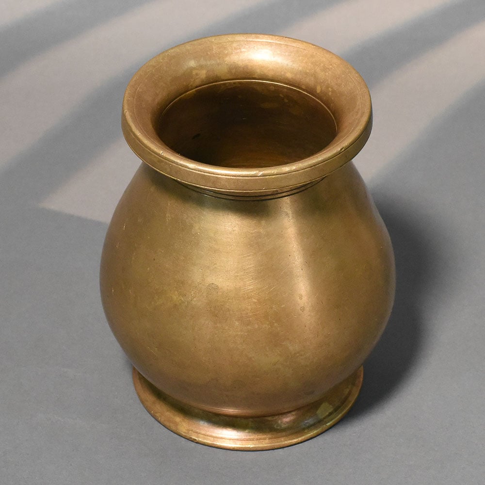 This handcrafted brass minimal vintage finish classic kalash is a timeless piece defined by its smooth silhouette and understated elegance. Designed with a gently curved body, broad neck, and stable base, it reflects a clean and balanced form rooted in traditional Indian craftsmanship. Made from solid brass, the surface features a soft, natural patina with subtle tonal variations that enhance its vintage appeal. The absence of heavy ornamentation allows the purity of the material and the form to stand out, making it a versatile piece that blends effortlessly into different settings. Minor surface variations and marks highlight its handcrafted nature, adding authenticity and character. This kalash is ideal for pooja rituals, water storage, and sacred offerings, making it a practical addition to both daily spiritual practices and special ceremonies. The wide opening ensures ease of use, while the sturdy base provides stability during rituals. Its simple design makes it highly functional without compromising on aesthetic value. In addition to its ritual use, this brass vessel serves as a refined dcor accent. Its muted golden tones and minimalist design complement both traditional interiors and contemporary spaces, adding warmth and a sense of heritage without overwhelming the environment. Perfect for spiritual use, gifting, or collectors of handcrafted objects, this kalash offers durability, simplicity, and timeless appeal.