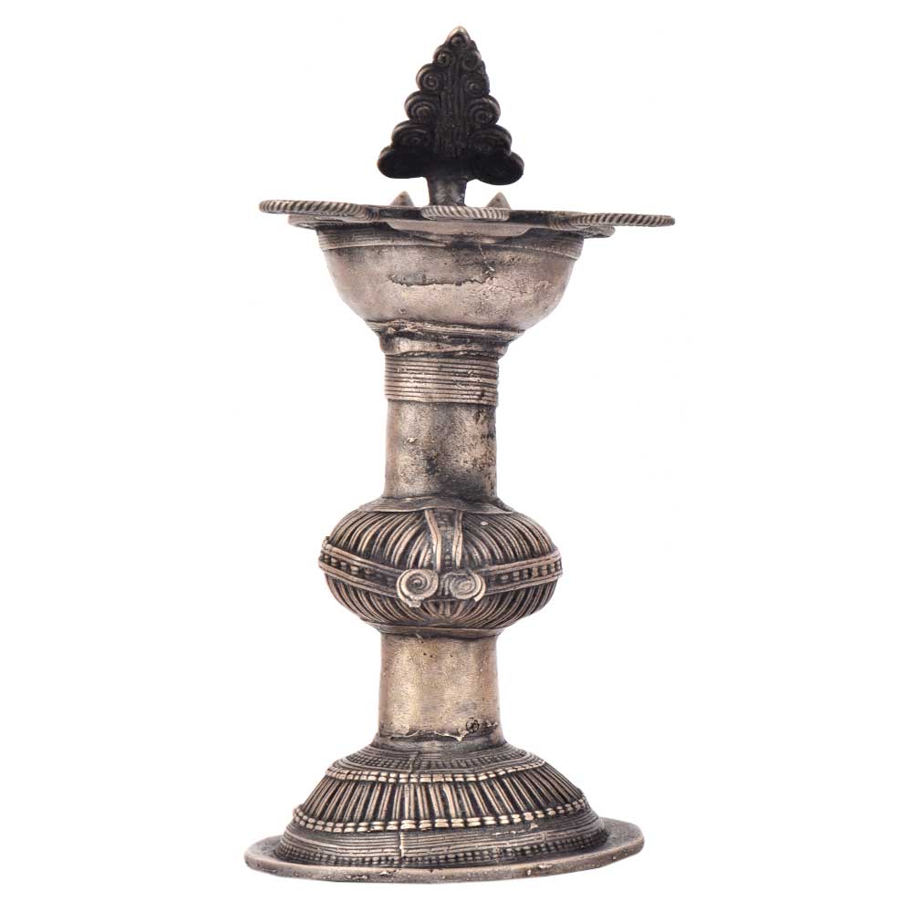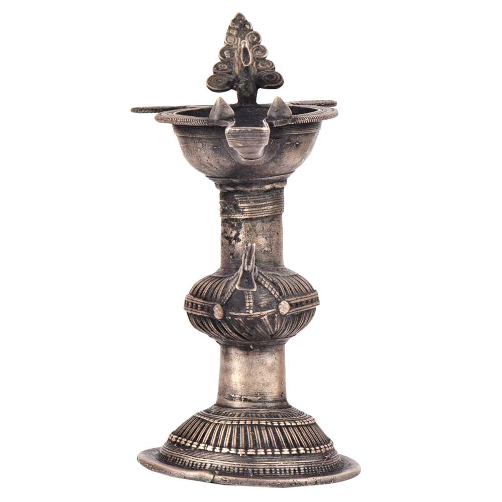 Handcrafted using old lost wax technique primarily practiced in Orrisa and West Bengals by the local or tribal artisans. In this technique the molten wax is poured into desired clay mould and when the wax melts the clay is broken and we get the desired metal object which is further polished to perfection. The Deep Cup Can Be Filled with Oil and Light a Cotton Wick. Diyas/ Oil Lamps are Considered Auspicious as in Hindu Religion. It is detailed with Elephant and Peacock Animals with Beautiful Details.
