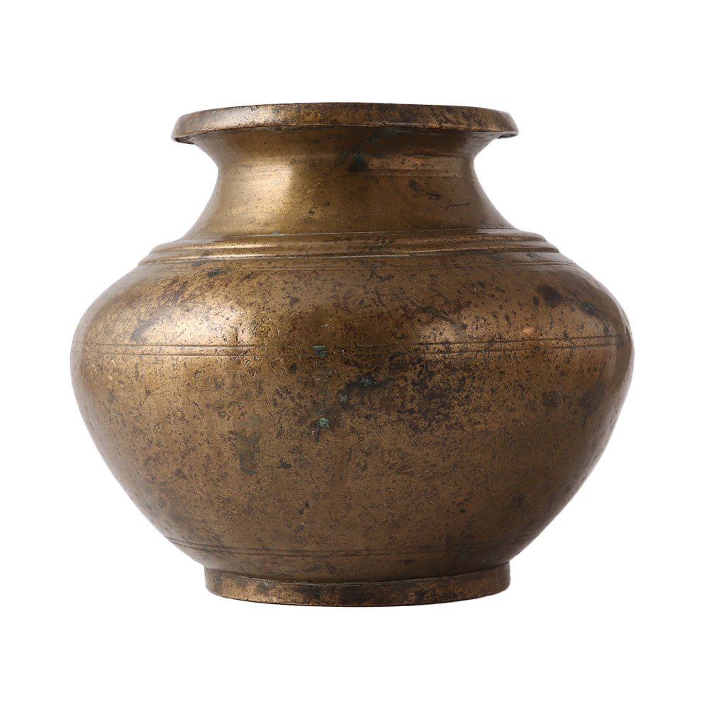 The engraved brass water pot (Lota) from North India is handcrafted by regional artisans, and each pot has a unique design that makes them all unique. The Pot displays the period's unique design. This beautiful accent piece is a treat for collectors and looks amazing in any room.