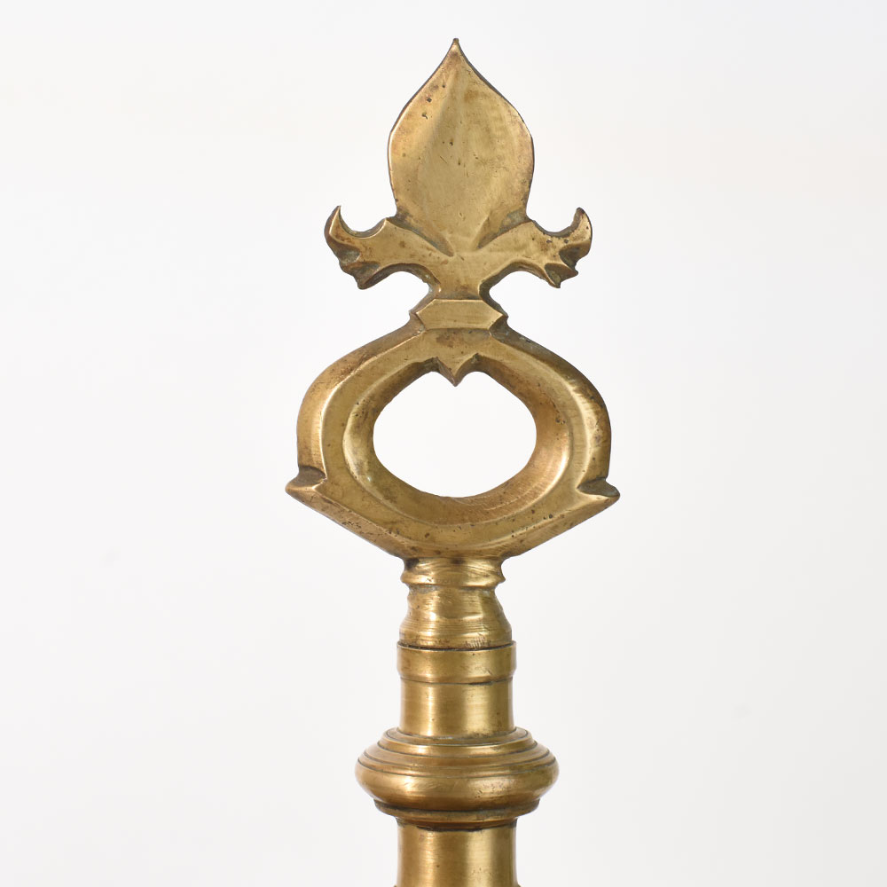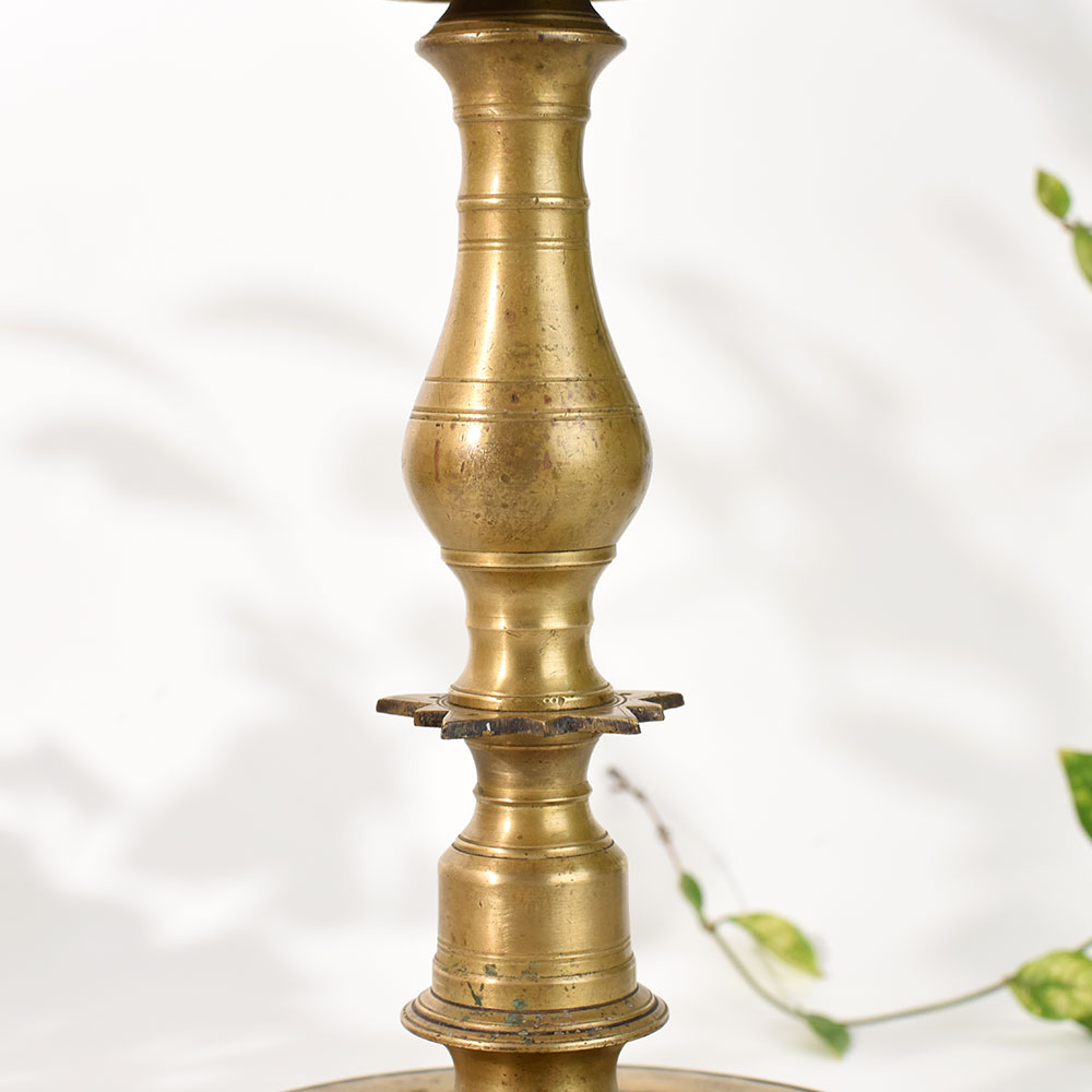 - Classic South Indian brass lamp stand with ornate finial