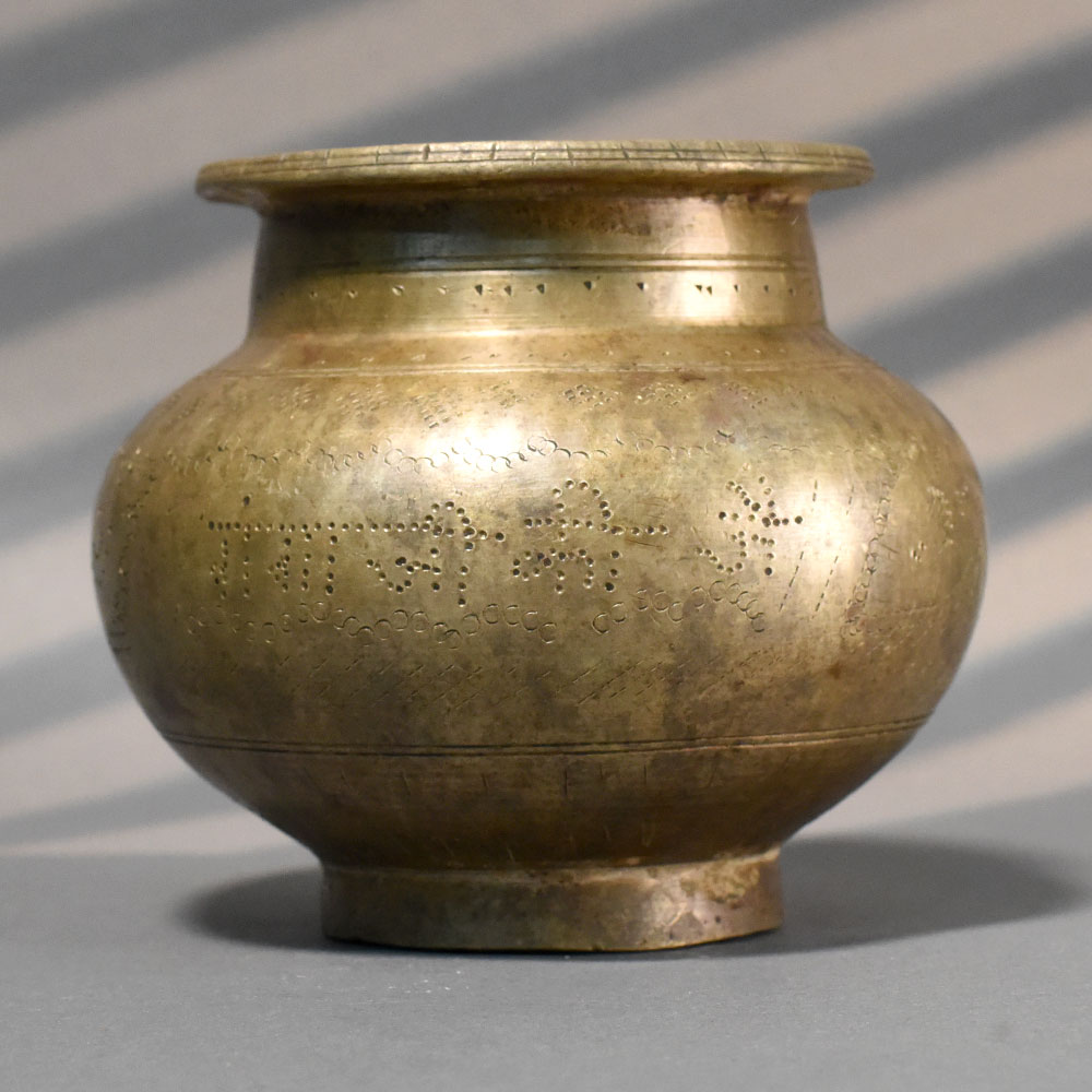 This handcrafted brass vintage finish traditional pooja kalash embodies simplicity and cultural depth through its classic rounded silhouette and subtle hand-etched detailing. Designed with a wide mouth and stable base, it serves as a functional and aesthetic addition to traditional ritual setups. Crafted from solid brass, the surface features delicate dotted motifs arranged in linear patterns across the body. These understated engravings add texture while maintaining a minimal, elegant look. The naturally aged finish introduces soft variations in tone, highlighting the authenticity of the handcrafted process and giving the piece a timeless, heritage-inspired appeal. The kalash is ideal for pooja rituals, water storage, or sacred offerings, making it suitable for daily spiritual practices as well as special occasions. Its wide opening allows for easy handling, while the sturdy base ensures stability during use. The balanced proportions make it both practical and visually harmonious. Beyond ritual use, this brass pot also works beautifully as a decorative accent. Its muted golden tones and handcrafted details complement both traditional interiors and contemporary spaces, adding warmth and cultural character without overpowering the setting. A perfect choice for those who appreciate handcrafted utility objects with traditional significance, this kalash offers durability, authenticity, and understated elegance in one form.