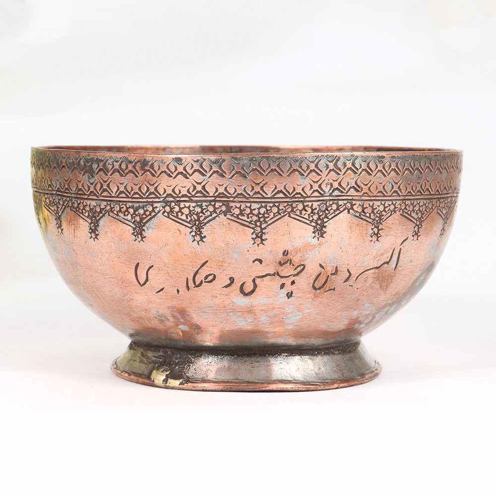 Adorn your interior with the timeless charm of our Vintage Copper Bowl that is a masterpiece of Islamic Art crafted by skilled artisans. Imbued with the rich cultural heritage of meticulous craftsmanship, this bowl is a testament to the artistry that flourished in the Islamic world. The antique brown finish exudes an aura of sophistication, adding a touch of opulence to any space. Handmade with precision from high-quality copper, each bowl is a unique creation, showcasing intricate engravings that tell a story of tradition and artistry. Its versatile design allows it to seamlessly fit into various settings, be it at home, in the office, a restaurant, hotel, or cafe. The bowl's multi-functional appeal makes it suitable for both decoration and practical use, doubling as an indoor flower pot for a refreshing botanical display. An ideal addition to any vintage collection, this Copper Bowl serves as a distinctive statement piece, capturing the essence of bygone eras. Thoughtful and meaningful, it makes for a splendid gift to cherish, bestowed upon your loved ones during special, festive, or auspicious occasions.