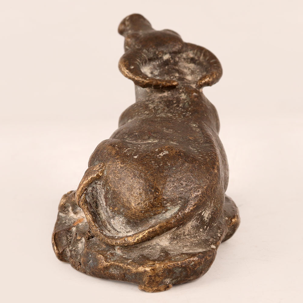 Enhance your home decor with the timeless charm of this exquisite vintage Ox brass statue. Crafted with meticulous attention to detail by highly skilled artisans in the English Art tradition, this masterpiece showcases a sitting Ox on a platform, all adorned with an antique brown finish that exudes a sense of history and elegance. With its versatile design, this stunning statue can find its place in various settings, whether it's at home, in your office, a restaurant, hotel, cafe, or shop. Its remarkable craftsmanship makes it a captivating decoration piece that adds a touch of sophistication to any space. Beyond its aesthetic appeal, this brass Ox statue serves a practical purpose too. Its weighty presence makes it a functional paperweight, adding a touch of distinction to your workspace. Furthermore, for vintage enthusiasts and collectors, this piece is a treasure waiting to be added to your collection. Whether you're celebrating a special occasion or simply want to show your affection, this vintage brass Ox statue makes for an exceptional gift choice. Its symbolic significance and timeless beauty ensure it will be cherished on festive or auspicious occasions.