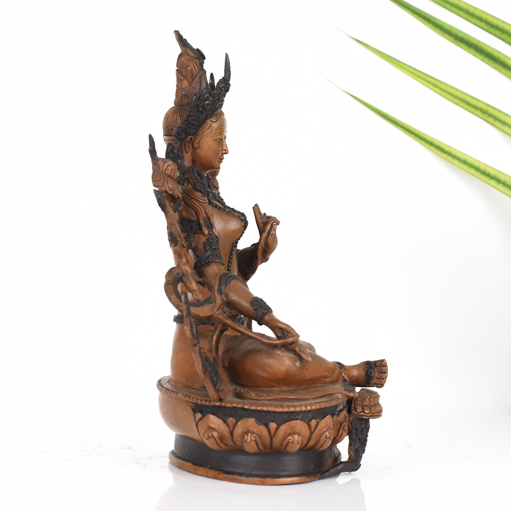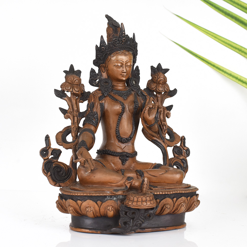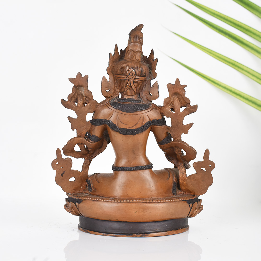 The Green Tara is a beloved figure in Tibetan Buddhism, symbolizing the mother of liberation and the embodiment of compassion. This vintage copper statue captures her serene, benevolent essence, inviting you to cultivate these transformative qualities within yourself. As you gaze upon this exquisite work of art, you'll be transported to the sacred spaces of the Himalayas, where the Green Tara's blessings have uplifted countless souls. Place this statue in your prayer room or meditation space, and let her calming presence inspire you to open your heart, quiet your mind, and deepen your spiritual practice. Whether you're a seasoned Buddhist practitioner or simply seeking greater inner peace, this stunning Green Tara statue will become a cherished centerpiece, guiding you on your journey of self-discovery and awakening.