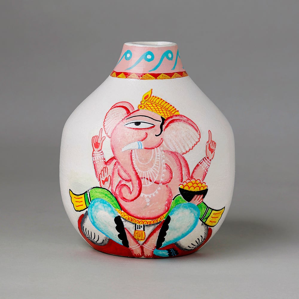 • Handcrafted Ceramic Kalighat Ganesha Decorative Folk Art Vase