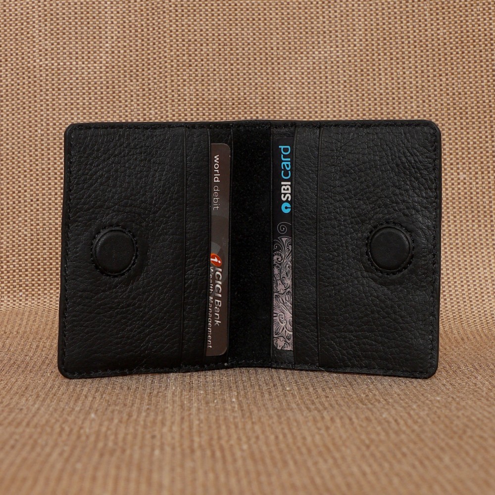 Crafted in gorgeous Charcoal leather, it has a hidden magnet closure, it securely holds your belongings while maintaining a minimalist look. It features four card slots for your daily cards and two hidden pockets for those extra essentials, combining practicality with refined aesthetics.
