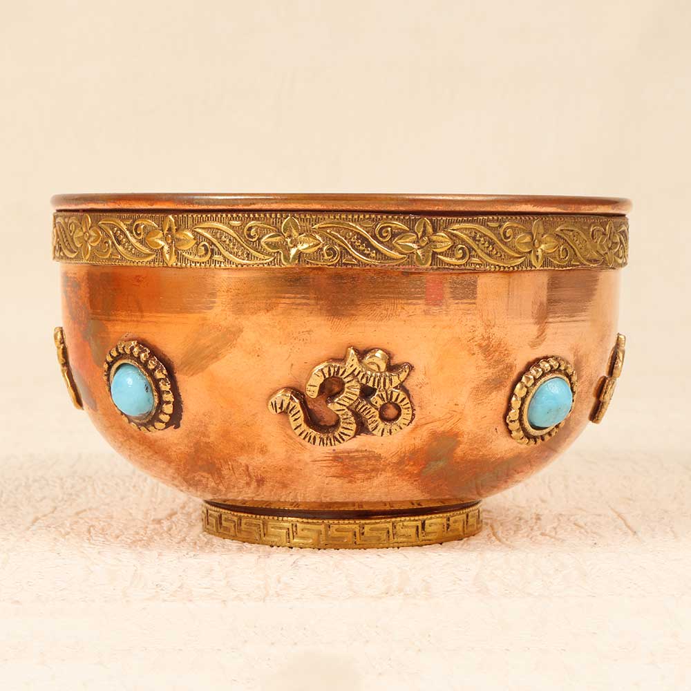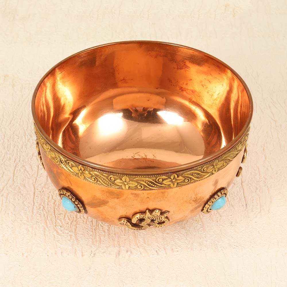 Discover the beauty and elegance of Nepalese art with this stunning copper brass bowl. Crafted by skilled artisans, the intricate hand-hammered design makes this bowl a true work of art for your home. This eye-catching bowl adds a touch of Nepalese style to any space. The hammered texture gives visual interest while the coppery sheen lends a luxurious feel. Place it on a counter or table to elevate your decor. Use it to hold fruit or nuts when entertaining guests. However, you display it, this bowl is sure to spark conversation. Bring the artistry of Nepal into your home with this gorgeous hand-hammered copper brass bowl. Its elegant design and quality craftsmanship make it a statement piece you'll cherish for years to come.