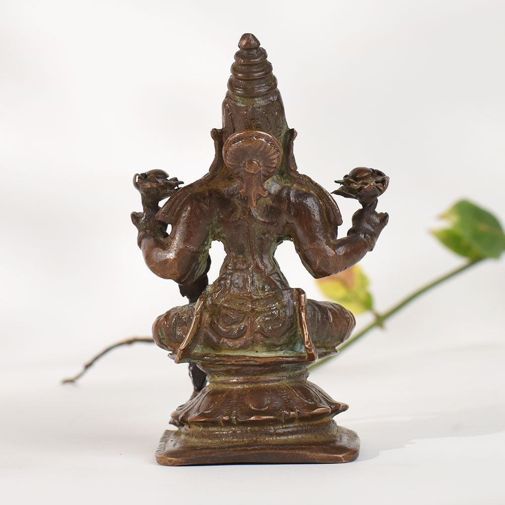 Bring timeless divinity into your home with this handcrafted vintage copper goddess Rajarajeshvaristatue, beautifully detailed and rich with old-world charm. Made using traditional metal-craft techniques, the sculpture reflects the serene grace and spiritual symbolism associated with feminine divine energy. Its aged copper patina, subtle texture variations, and artisanal imperfections make it a meaningful decor piece for those who appreciate heritage art, sacred collectibles, and Indian spiritual decor. Perfect for meditation spaces, home altars, study tables, spiritual corners, and gifting, this statue carries an authentic vintage appeal that enhances any environment with a sense of peace and cultural depth. Whether youre a collector of antique-style idols or someone seeking a soulful decor element, this handcrafted copper figure brings warmth, reverence, and artistic value to your space.