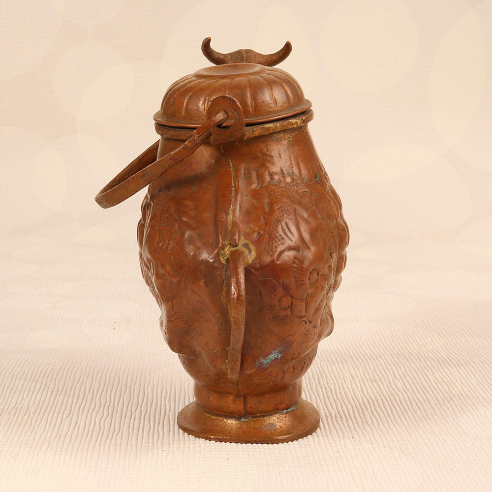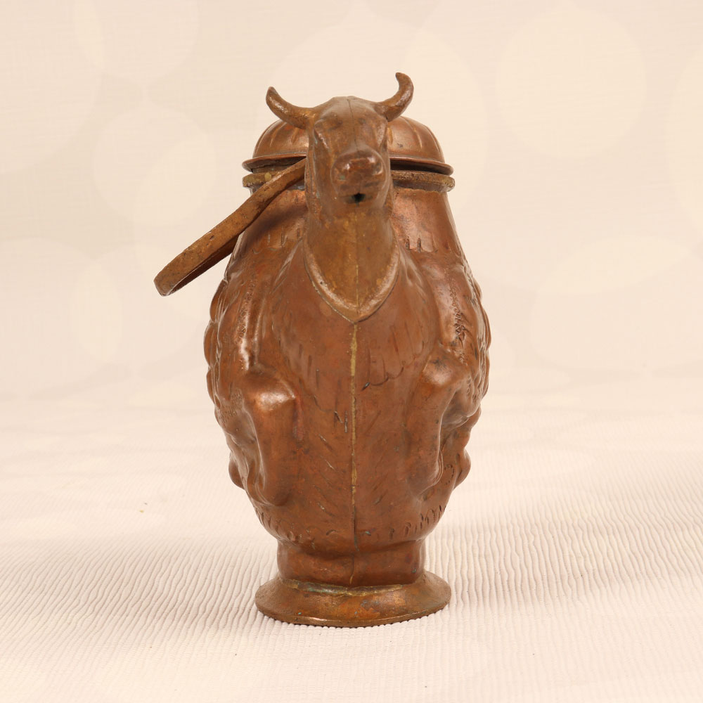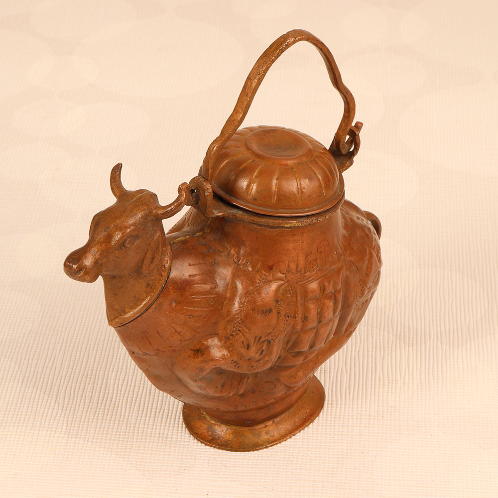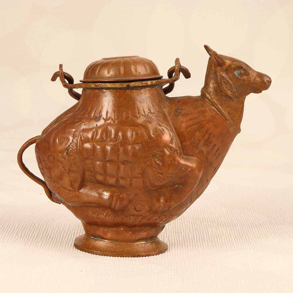 Buy a Copper Holy Water Pot online that is a unique blend of tradition and artistry that adds a touch of spiritual elegance to any space. This sacred vessel is crafted in the shape of a revered cow, symbolizing purity and divinity in Hindu culture. Handmade by talented Indian artisans, each pot is meticulously shaped from high-quality copper, ensuring durability and authenticity. The antique brown finish enhances its aesthetic appeal, giving it a timeless charm that complements both modern and traditional interiors. The pot features a secure lid and a sturdy handle, allowing for easy handling and ensuring the sacred water within is preserved in its sanctity. This versatile piece is not only a symbol of religious reverence but also a statement of artistic excellence. Perfect for adorning homes, offices, restaurants, hotels, or cafes, it seamlessly merges functionality with cultural significance. It serves as an ideal gift for your loved ones on special, festive, or auspicious occasions, symbolizing blessings, good fortune, and the richness of tradition.