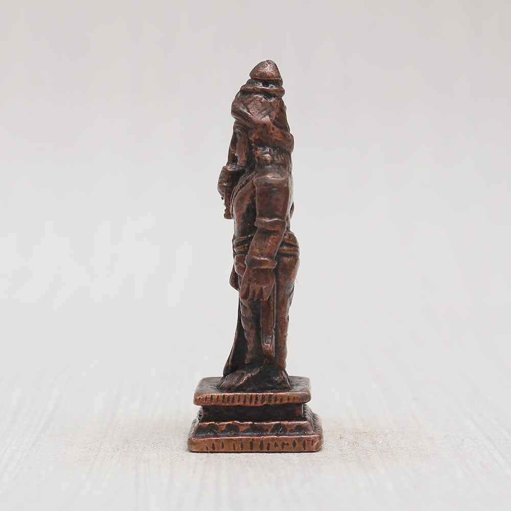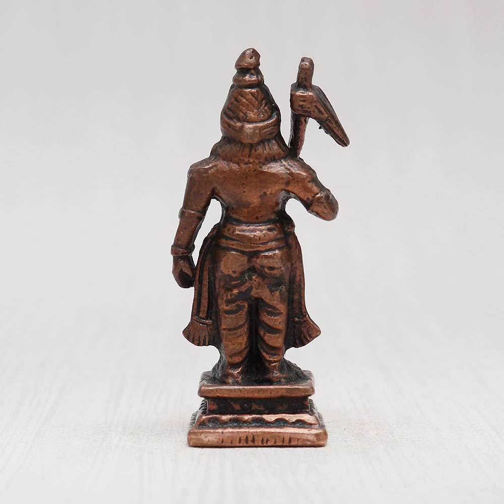 Buy a copper statue of Lord Balram online who is the elder brother of Lord Krishna, exquisitely handcrafted by professional Indian artisans with meticulous attention to detail. Standing proudly on a platform, Lord Balram holds his iconic plough weapon in his right hand, emanating an aura of divine power and grace. This divine creation is fashioned from high-quality copper, giving it a timeless vintage-style finish that adds an air of antiquity and reverence. The statue is an ideal addition to your prayer room at home, office, restaurant, cafe, or shop, creating a sacred ambiance and invoking a sense of spiritual connection. The eye-catching detailing of the statue makes it a perfect showpiece for exhibitions, enhancing any space with its captivating presence. Its versatility also extends to being an exquisite item for decoration and collection, adding an aura of holiness to any environment. Placing this statue in a temple for worship will undoubtedly inspire deep reverence and devotion. It also makes for a thoughtful and cherished gift for loved ones on special, festive, or auspicious occasions, truly embodying the essence of divine blessings. For those seeking Hindu god statues to buy, this divine Lord Balram murti is available online, offering a unique opportunity to bring home a powerful representation of spirituality and devotion.