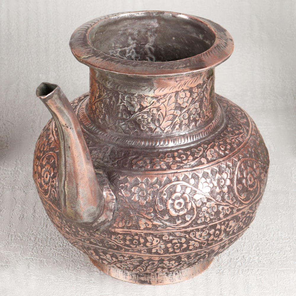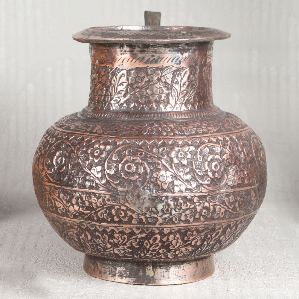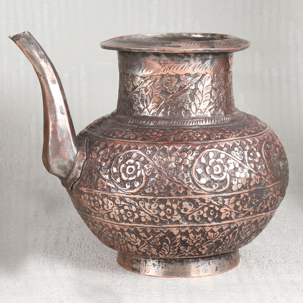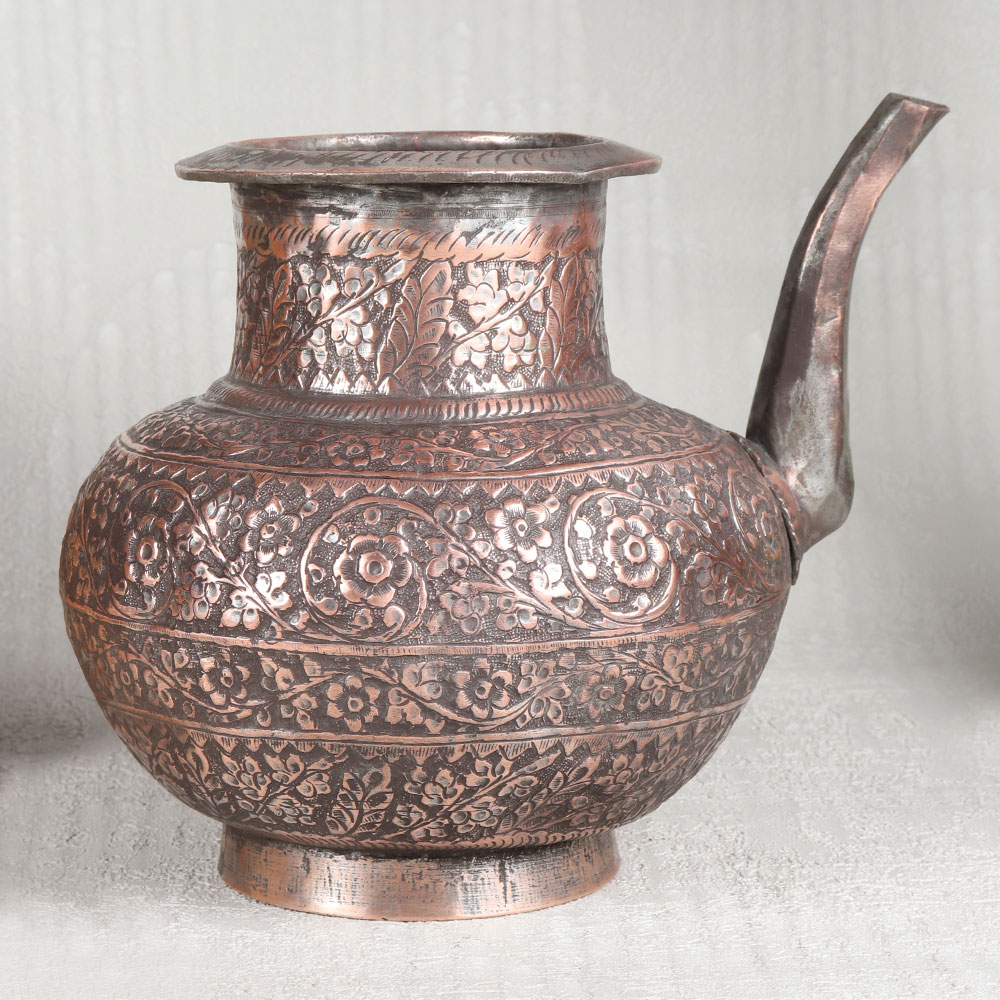 Buy an Antique Brown Copper Water Pot with Engraved Designs which is meticulously handcrafted by highly skilled Indian artisans hailing from the heritage-rich city of Hyderabad. This stunning piece of artistry is the epitome of elegance and functionality, a testament to the timeless beauty of Islamic Art. Crafted from the highest quality copper, this pot exudes a warm and inviting antique brown finish that adds an air of sophistication to any setting. The intricate engravings adorning its surface showcase the artisan’s dedication to detail, making it a mesmerizing work of art in itself. Versatile in purpose, this copper pot is suitable for a multitude of settings. Place it in your home, office, restaurant, hotel, or cafe to elevate the ambiance with its unparalleled charm. It can serve as a stunning decorative piece, a flower pot, or even hold holy water for rituals, imbuing sacred moments with a touch of opulence. Moreover, this exquisite pot makes for an ideal gift on special, festive, or auspicious occasions, allowing you to share the beauty of Indian craftsmanship with your loved ones.