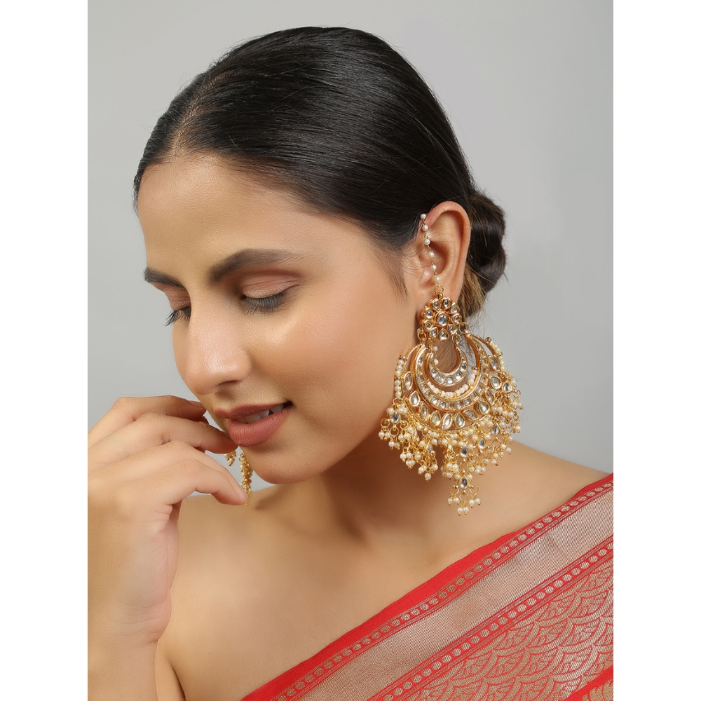 Handcrafted Crescent Kundan Pearl Chandbali Earrings