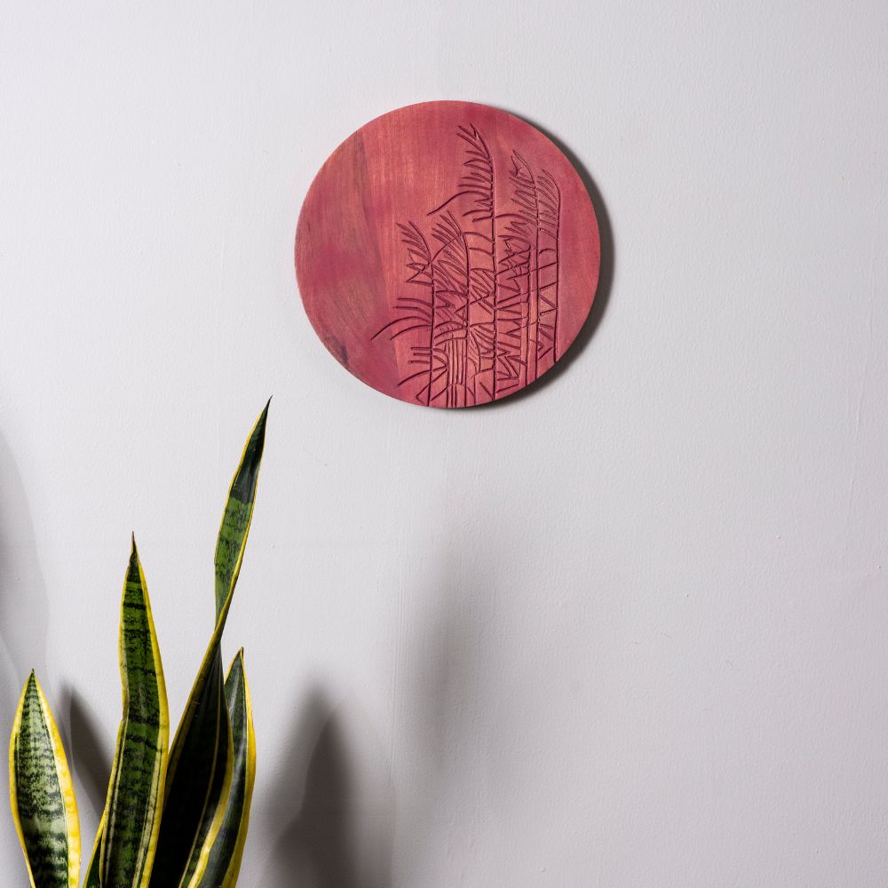 Bring artisanal warmth into your living space with this muted pink wooden wall plate, delicately hand-carved with natural botanical patterns. Its soft crimson undertone makes it a versatile accent for both modern and rustic interiors. Packed & quality-checked by Indianshelf.
