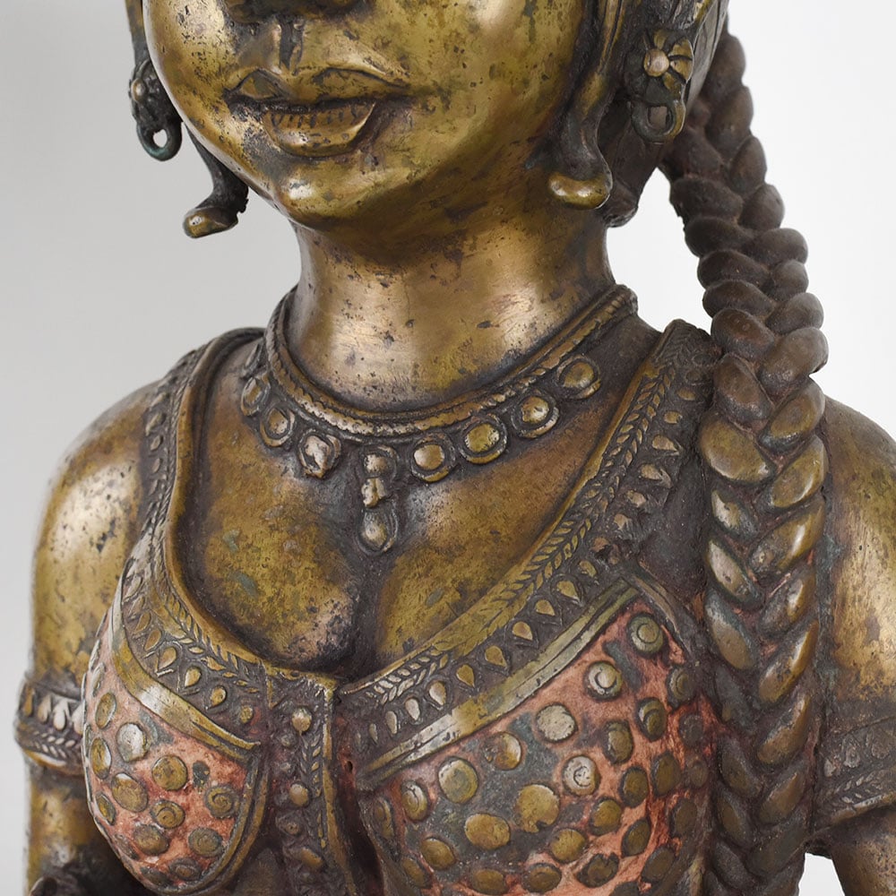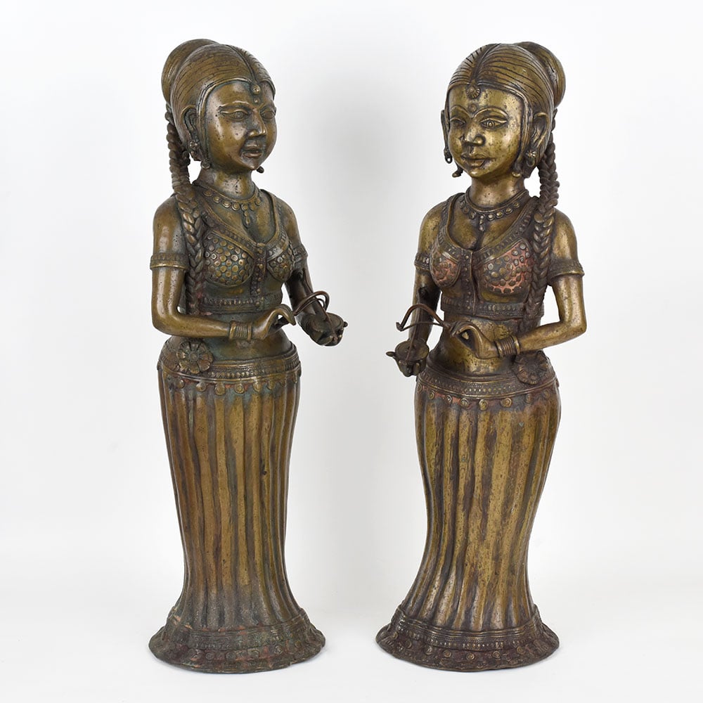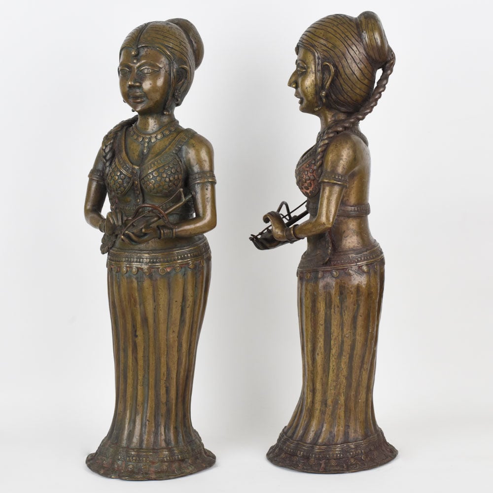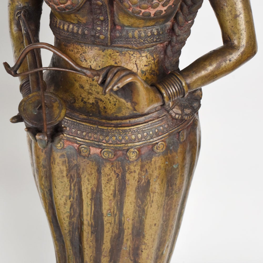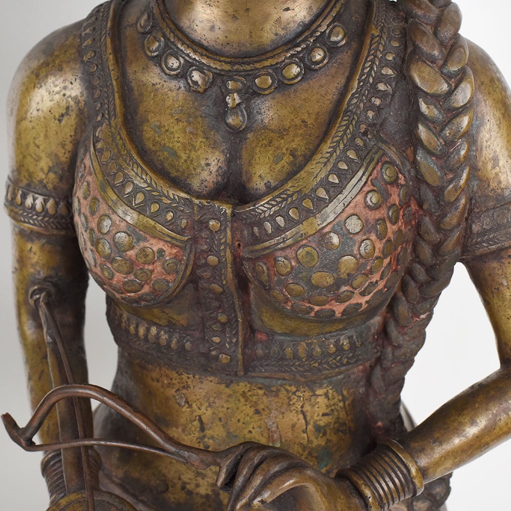 Celebrate the spirit of tribal heritage with this pair of vintage brass tribal lady statues, each captured mid-performance, playing traditional musical instruments. These stunning figures are more than decor—they’re a tribute to cultural rhythm and ancestral storytelling through music and dance. Expertly crafted from solid brass, each lady is adorned in traditional tribal attire, with intricate detailing on her jewelry, hair, and instrument. The pair exudes harmony and life, making them an exceptional centerpiece for collectors and lovers of ethnic art.