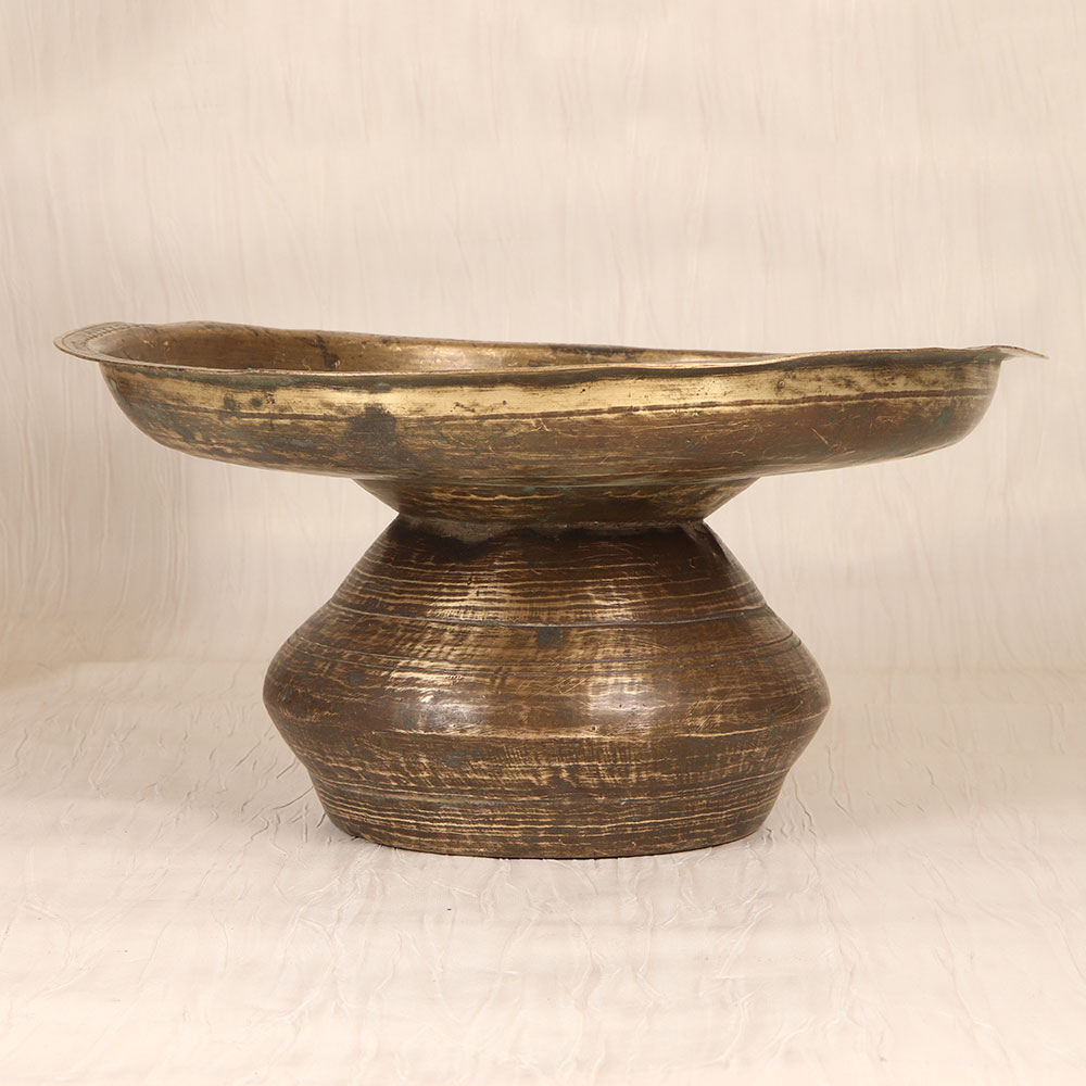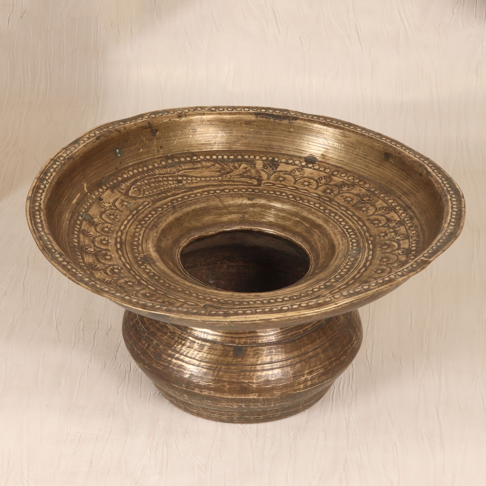 Elevate your home decor with the captivating Vintage Brass Silapchi Pot - a timeless piece that blends traditional craftsmanship with modern elegance. This exquisite Silapchi pot is more than just a functional container - it's a work of art that will instantly elevate the ambiance of any room. The rich, warm tones of the brass create a striking contrast against the detailed engraving, drawing the eye and commanding attention. Whether you use it to hold plants, flowers, or decorative accents, this pot will infuse your space with a touch of timeless elegance. The Vintage Brass Silapchi Pot is perfect for homeowners, interior designers, and decor enthusiasts who appreciate the beauty of handcrafted, high-quality pieces. Its durable construction ensures it will withstand the test of time, while the versatile design allows it to seamlessly integrate into a variety of decor styles, from modern minimalist to rustic chic. Elevate your living space and make a lasting impression with this stunning brass masterpiece.