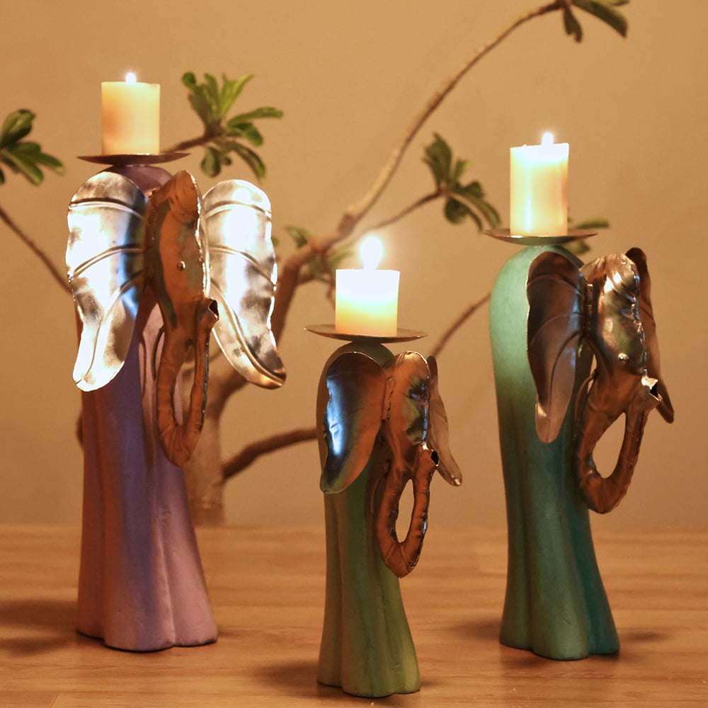 • Handcrafted Elephant Candle Holder Decorative Accent Set Of 3