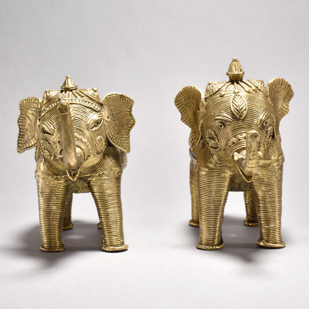 Bring the beauty of India's rich tribal heritage into your home with this stunning pair of large-scale metal elephant sculptures. Crafted with intricate jalli work and exquisite detailing, these majestic creatures will captivate all who lay eyes on them.These regal elephants are more than just beautiful objects - they're a celebration of India's vibrant cultural traditions. Display them proudly and let their timeless elegance transport you to the heart of the subcontinent. Whether a gift or a treat for yourself, this pair of tribal art masterpieces will be cherished for years to come. Handmade from premium metal in the Orissa region of India This timeless piece is handcrafted by skilled artisans using time-honored techniques, ensuring each creation is truly one of a kind. Its versatile design makes it suitable for living rooms, bedrooms, offices, or meditation spaces, bringing a sense of heritage and style wherever it is displayed. This timeless piece is handcrafted by skilled artisans using time-honored techniques, ensuring each creation is truly one of a kind. Its versatile design makes it suitable for living rooms, bedrooms, offices, or meditation spaces, bringing a sense of heritage and style wherever it is displayed.