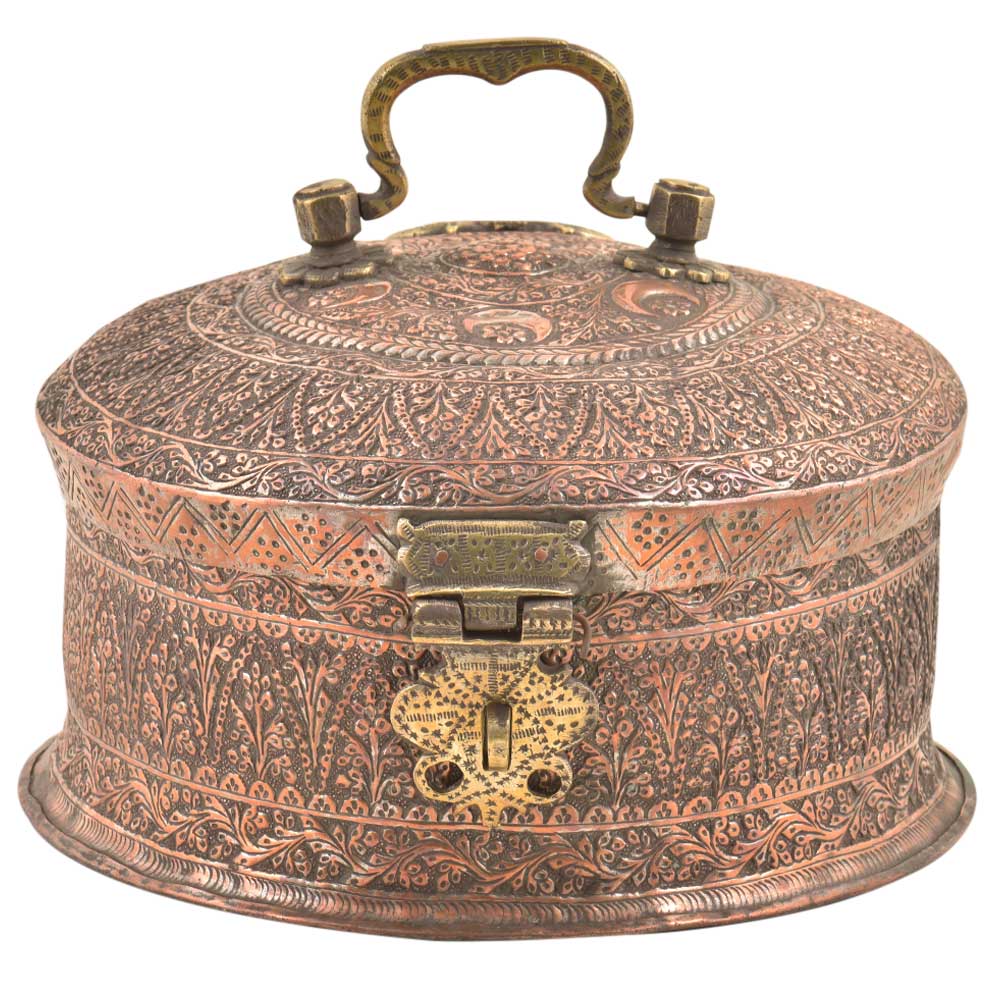 Handcrafted Embossed Copper Floral Decoration Pandaan Betal Box