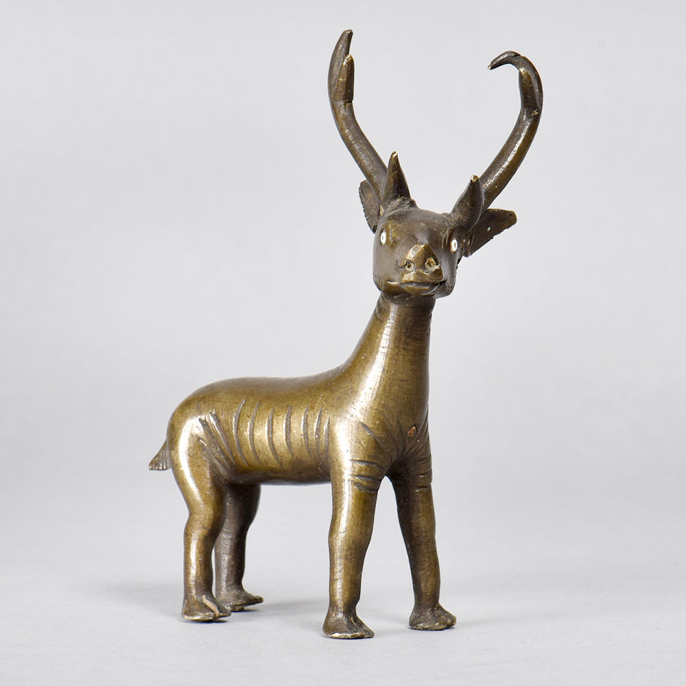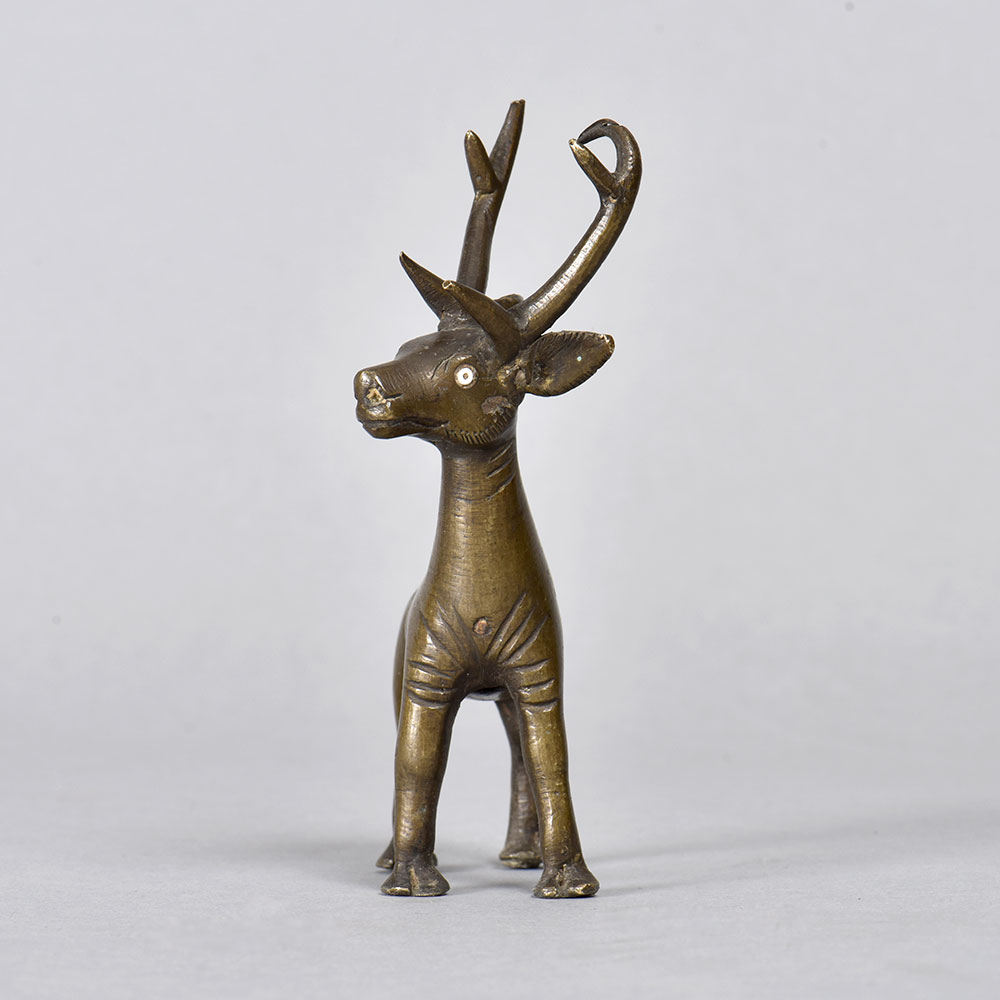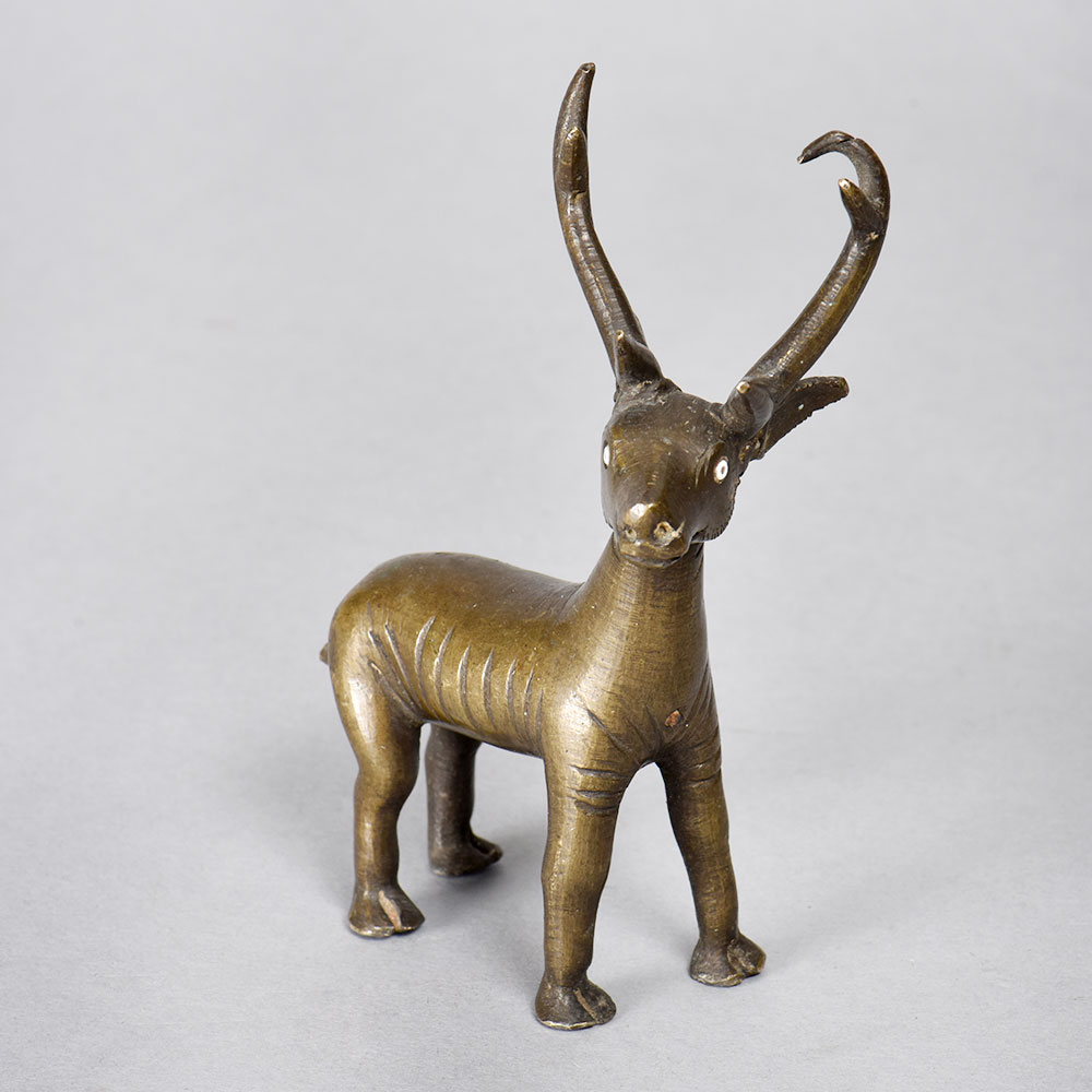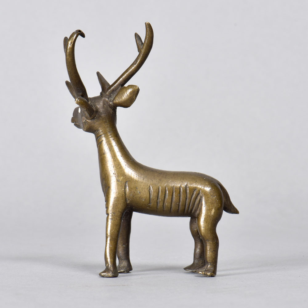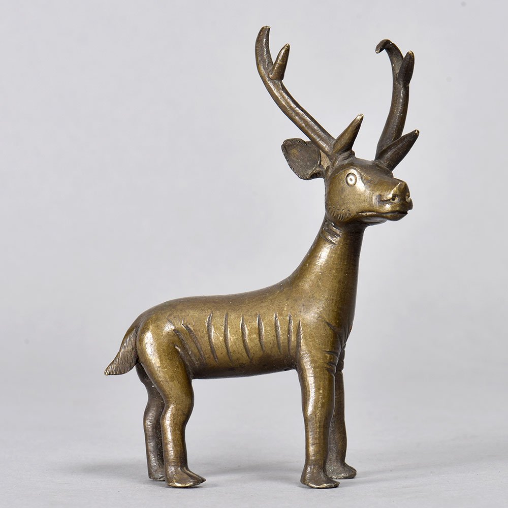 This magnificent brass deer statue is a work of art that will captivate anyone who lays eyes on it. Meticulously crafted with an exquisite attention to detail, every curve and contour of the deer's form has been lovingly rendered in solid brass. From the proud set of its antlers to the alert, watchful pose, this statue embodies the majesty and elegance of its wild counterparts. Whether you're looking to add a touch of rustic charm to your living room or seeking a stunning centerpiece for your entryway, this brass deer will elevate your décor with its timeless beauty. Its substantial weight and quality construction ensure it will be a treasured heirloom that can be passed down for generations. Bring the awe-inspiring splendor of nature into your home with this breathtaking brass deer statue.