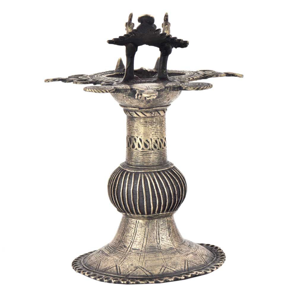 Handcrafted Ethnic Brass Oil Lamp Diya Deepak With Stand With Peacock Figurines