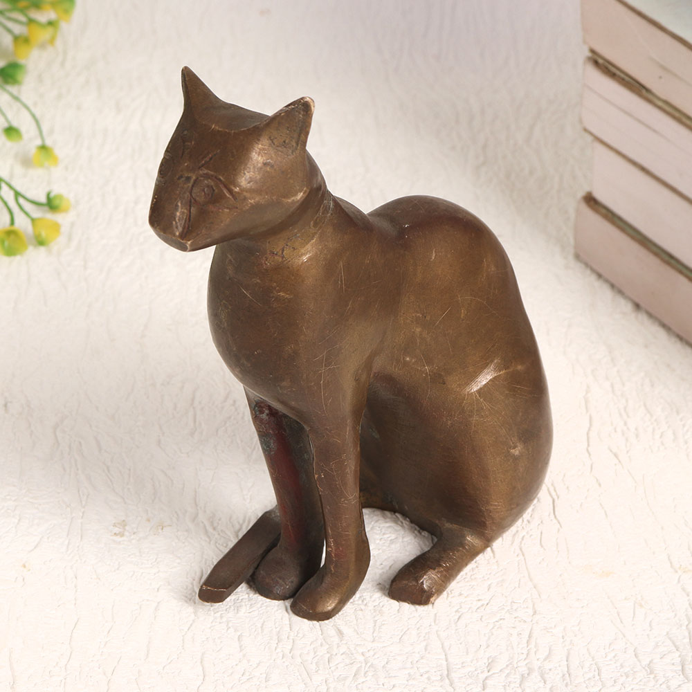 Buy a Brass Sitting Cat Statue online which is a testament to English Artistry and craftsmanship that will captivate your senses and elevate your decor. This stunning piece is meticulously handmade by talented artisans which boasts an antique brown finish that adds an air of vintage charm to any setting. Crafted with the utmost precision and care, this statue is cast in high-quality brass, ensuring its durability and timeless beauty. Its poised and regal stance makes it a versatile addition to any space – be it your home, office, restaurant, hotel, cafe, or shop. Imagine this elegant cat gracing your mantelpiece, adorning your dining table, or becoming a conversation starter in your establishment. It's not just a decorative piece, it's a symbol of refinement and elegance. For collectors, this statue is a must-have addition to your vintage collection, and for curators, it's a perfect exhibit centerpiece. Moreover, it makes for a thoughtful and memorable gift for your loved ones on special, festive, or auspicious occasions.