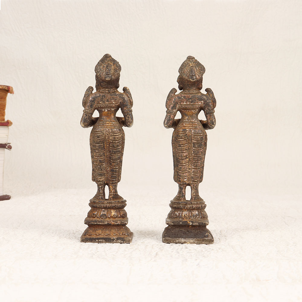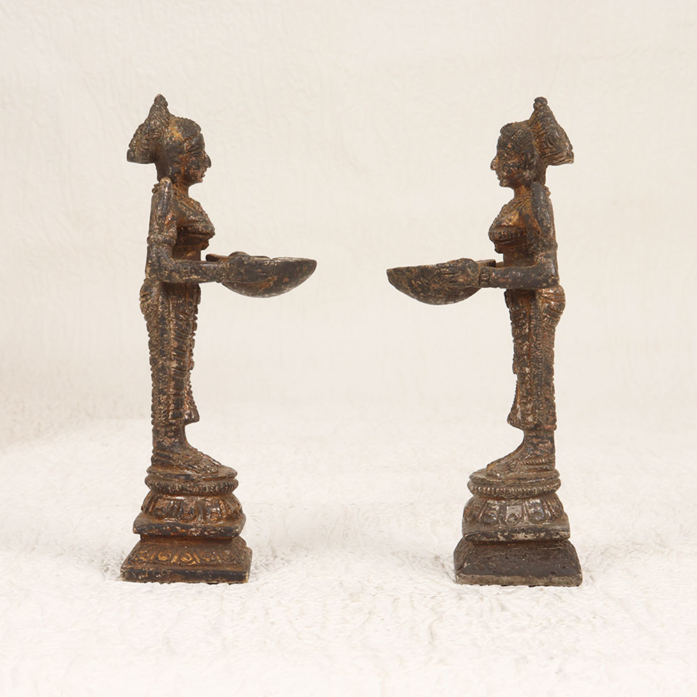 Buy a Vintage Brass Deep Laxmi Statue Pair online and get a hassle free delivery right at your doorstep. Meticulously crafted by highly talented Indian artisans, these statues boast a rich antique brown finish that adds a touch of opulence to any setting. Handmade from high-quality brass, each piece in this pair resonates with the cultural heritage and craftsmanship of India. With intricate detailing and a classic design, these statues are versatile enough to enhance various environments, including homes, offices, restaurants, hotels, cafes, and prayer rooms. Beyond their spiritual significance, these statues also serve as captivating decorative pieces, seamlessly blending tradition with sophistication. The statues make a perfect addition to any vintage collection, showcasing the enduring beauty of brass craftsmanship. Celebrate special, festive, or auspicious occasions by gifting these statues to your loved ones. Their enduring charm and cultural significance make them a cherished and meaningful present that transcends time and trends.