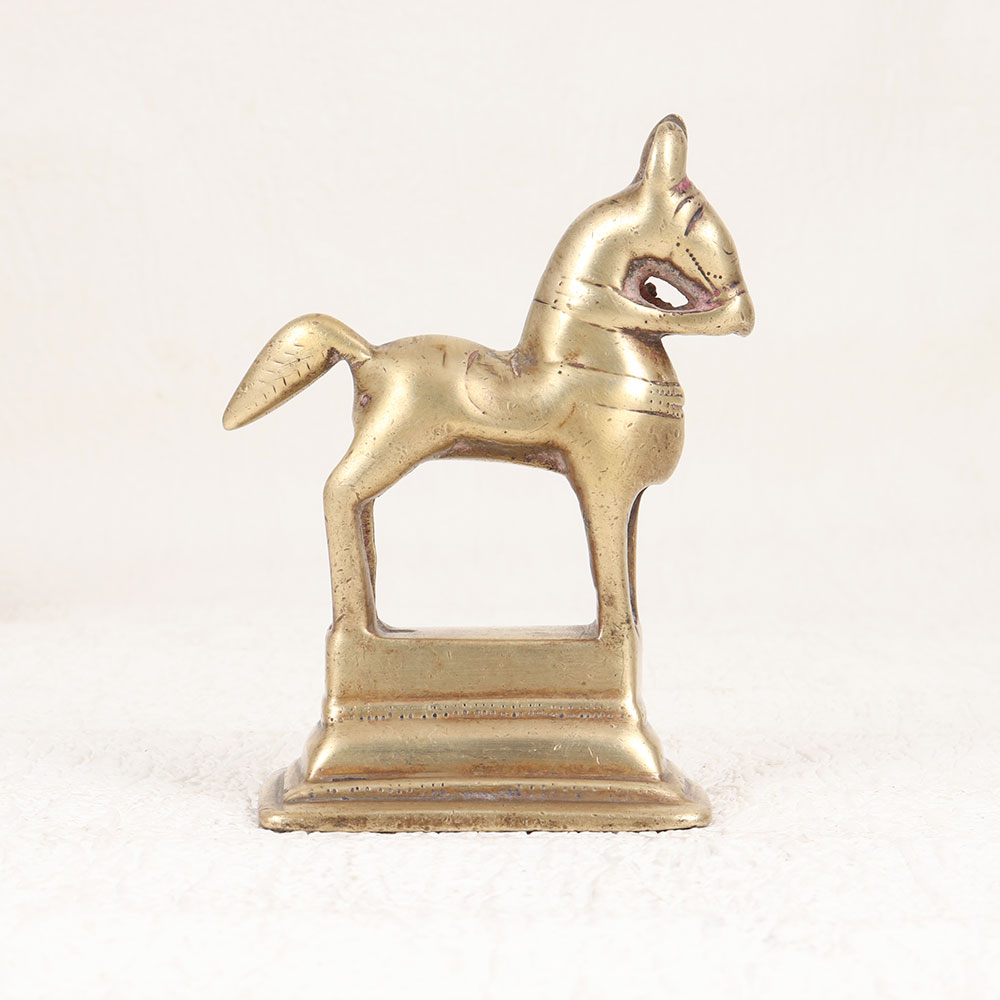 Decorate your home with our Vintage Brass Horse Statue that is a masterpiece meticulously crafted by highly skilled Indian artisans. This exquisite piece is fashioned from high-quality brass that showcases the rich heritage of traditional craftsmanship. Adorned with an antique brown finish, it exudes a timeless elegance that seamlessly blends spirituality with artistic finesse. This artisanal masterpiece holds a special place in prayer rituals, symbolizing strength, grace, and divine energy. Its vintage charm extends beyond religious significance, making it a versatile addition to any space. Whether placed at home, office, restaurant, hotel, or cafe, this statue effortlessly elevates the ambiance with its regal presence. Perfect for collectors of vintage treasures, this brass horse statue promises to be a noteworthy addition to your curated ensemble. Gift it to your loved ones on special, festive, or auspicious occasions, and share the timeless beauty and spiritual significance encapsulated in this handcrafted creation.