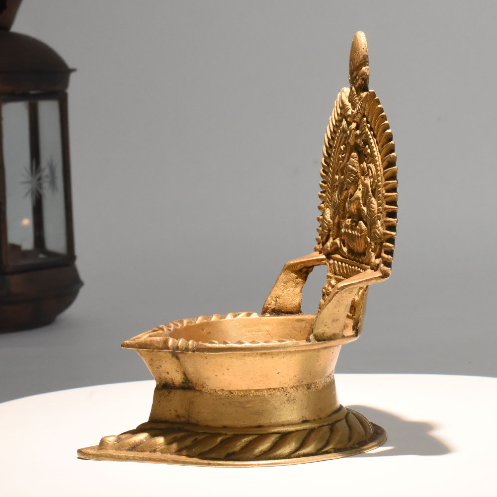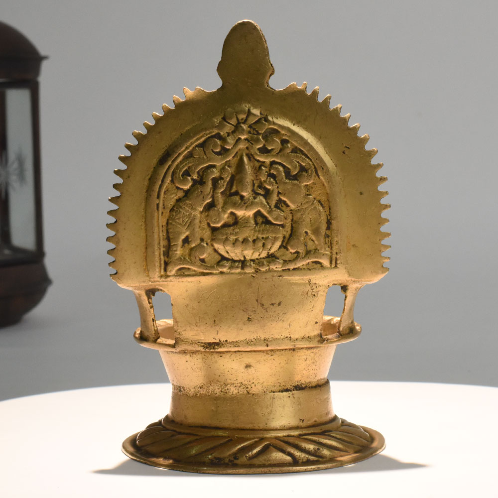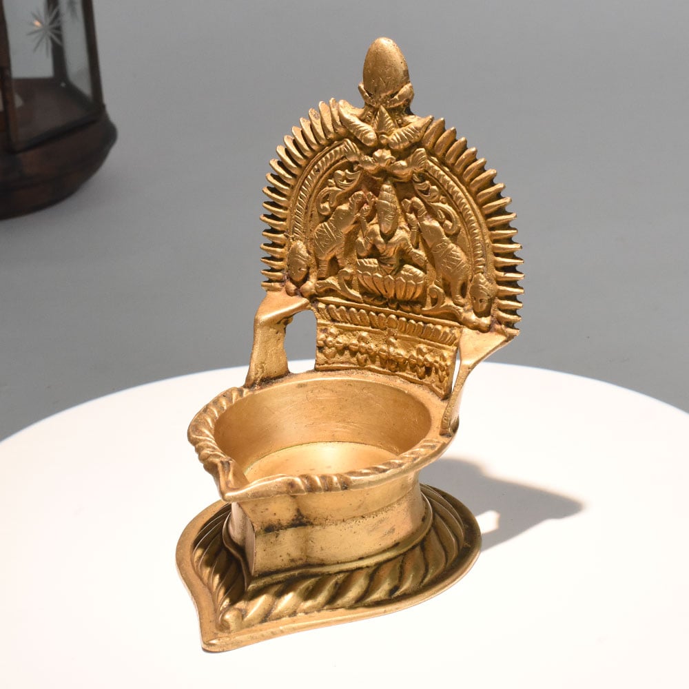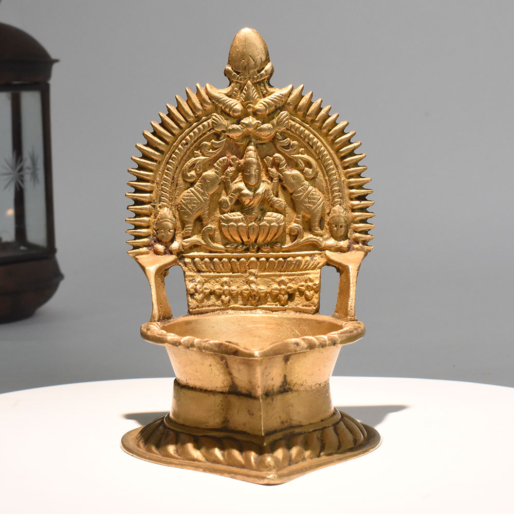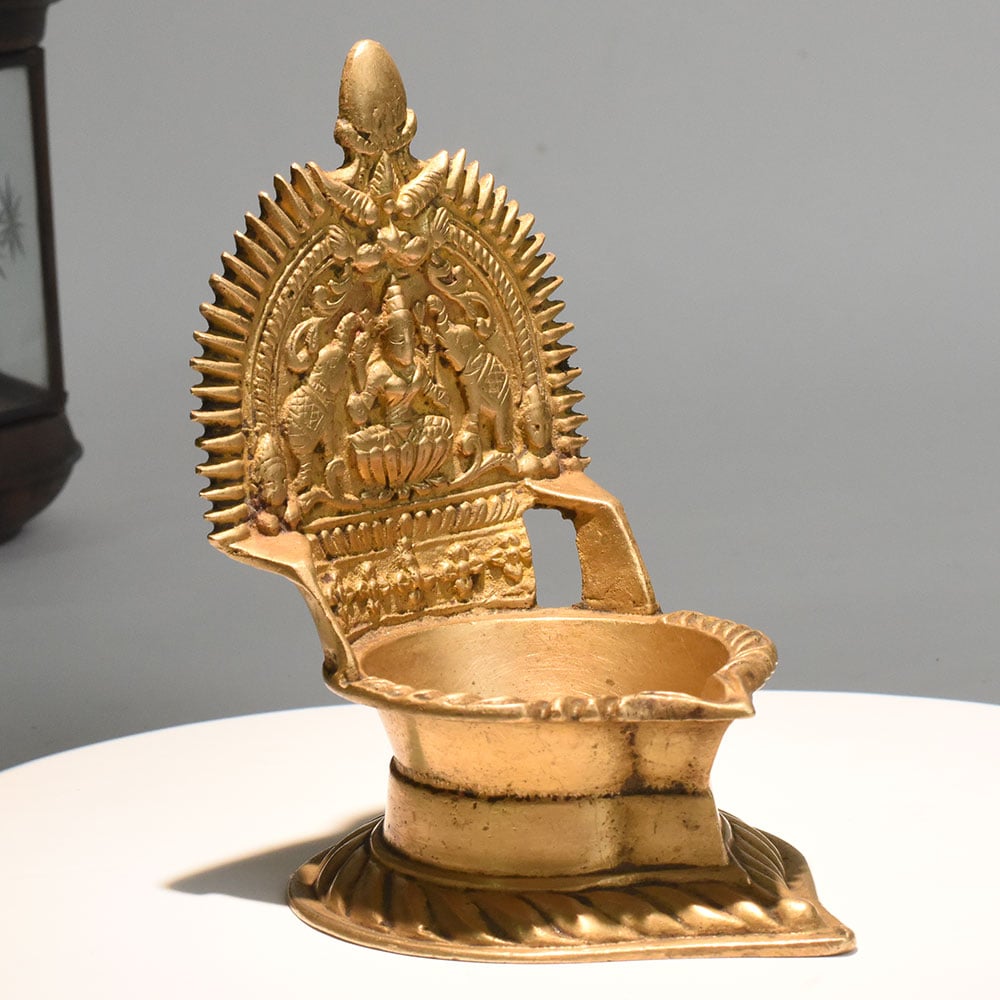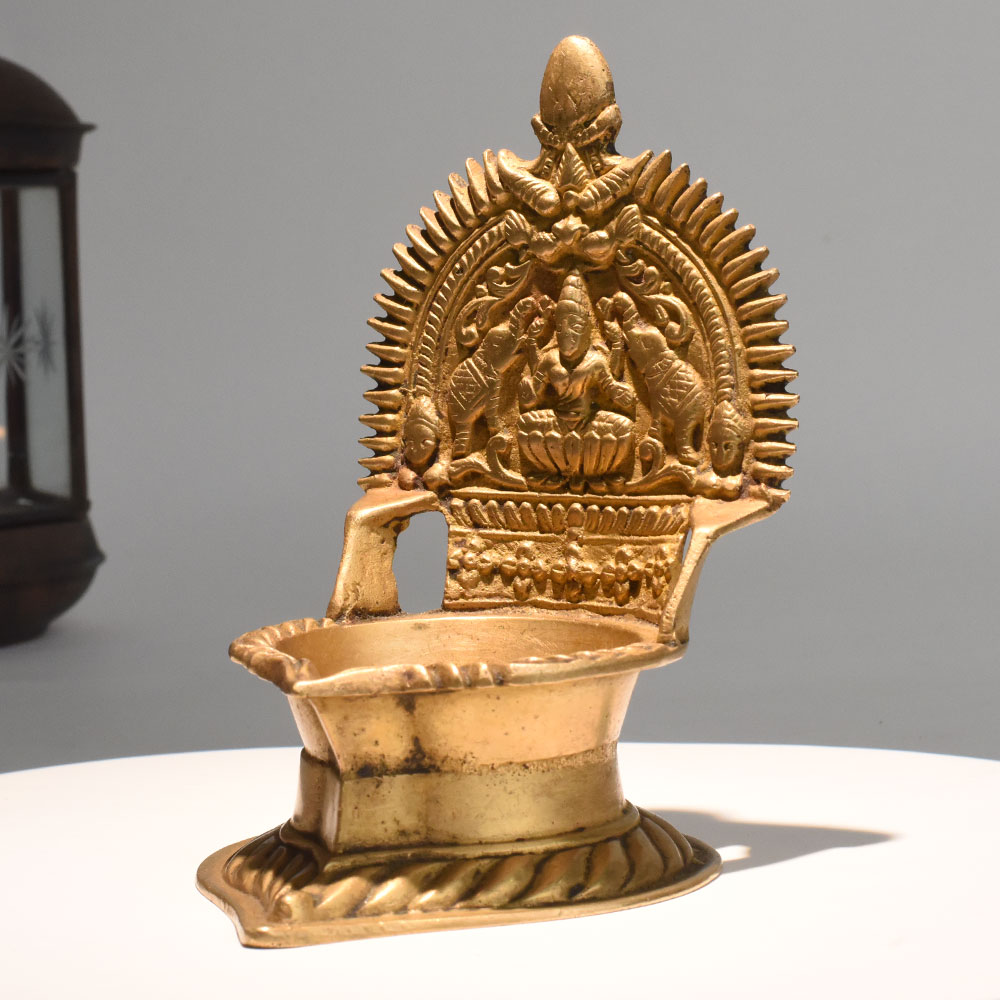 This handcrafted Gajalakshmi brass diya is a stunning representation of traditional Indian spirituality and artistic expression. Featuring Goddess Lakshmi seated with two elephants gracefully showering blessings, the lamp is a powerful symbol of prosperity, purity, and divine protection. The diya includes a deep oil bowl suitable for steady illumination during puja, meditation, and festive celebrations. Crafted by artisans who specialize in metalwork, the lamp showcases intricate carvings along the arch and base, making it an eye catching addition to any sacred space. Perfect for home altars, temples, and devotional gatherings, it helps create a serene and uplifting spiritual environment. Made from durable brass, it retains its shine and appeal for years. The presence of Gajalakshmi is believed to attract positive energy and abundance, making this diya both a functional ritual accessory and a meaningful decorative piece.