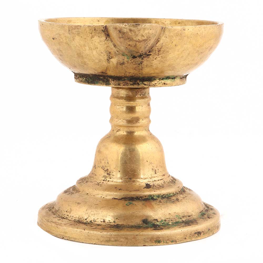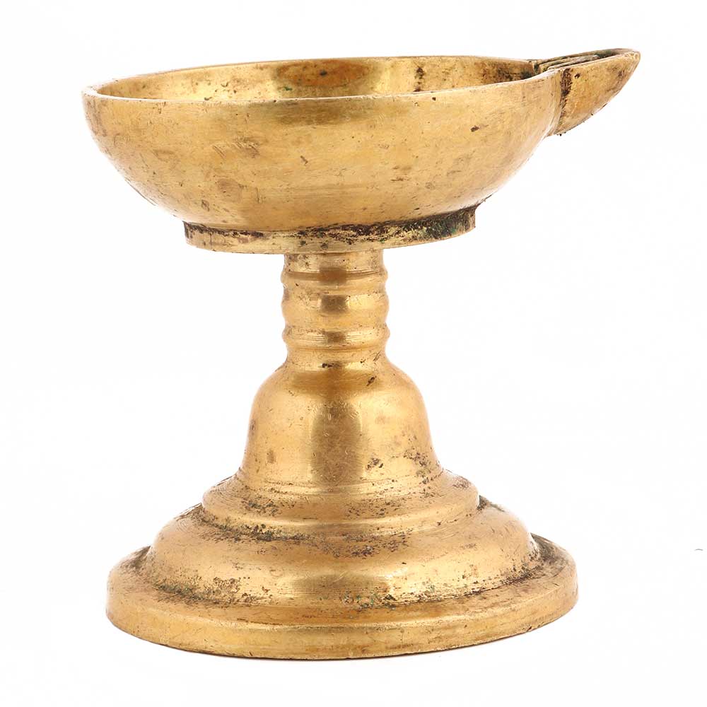 Handcrafted Golden Brass Puja Oil Diya With Single Face