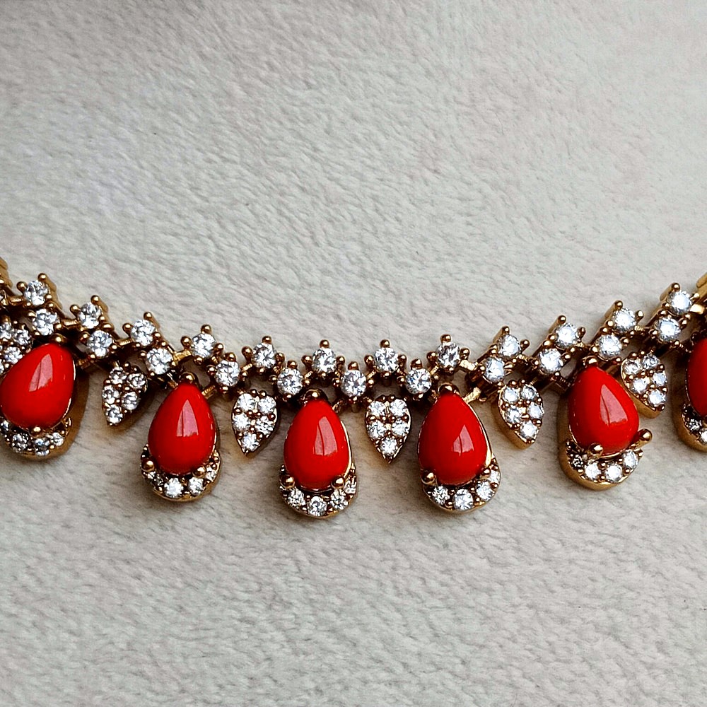 The Handcrafted Golden Carved Necklace Jewellery Set is a tribute to old-world ornamentation shaped for contemporary wear. Crafted from brass and finished in a rich orange tone, the carved detailing brings depth and dimension reminiscent of temple and folk jewellery traditions. Each groove and contour is formed by hand, giving the necklace a sculptural quality rather than a flat finish. With its long 27.56-inch length, it drapes elegantly, creating a confident, ceremonial presence.