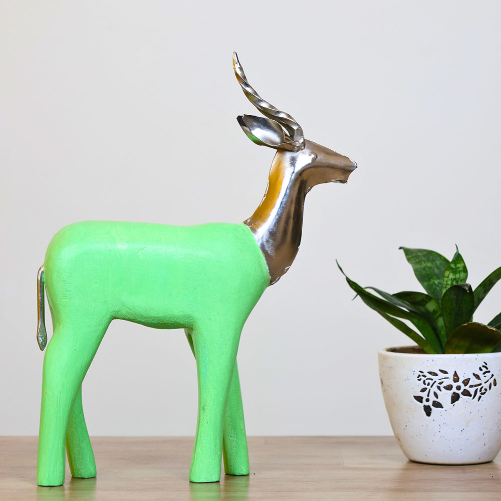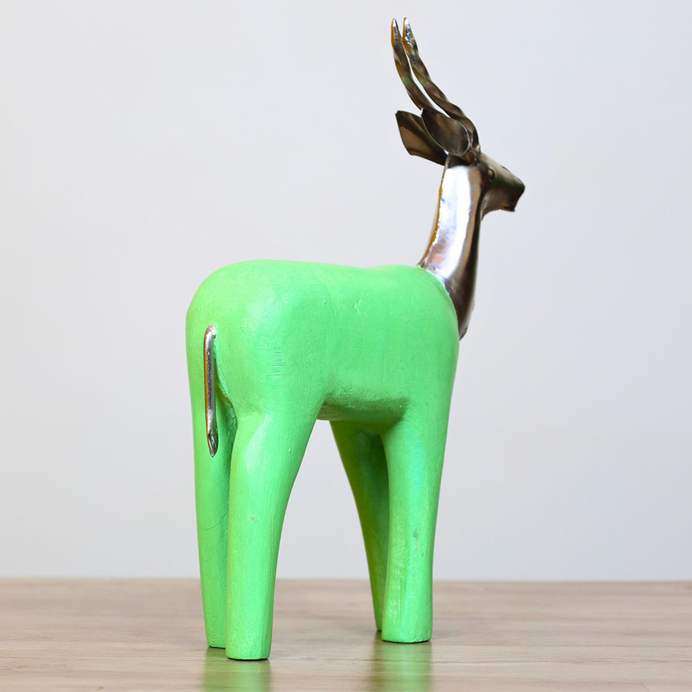 Handcrafted Green Mango Wooden Metal Deer Figurine