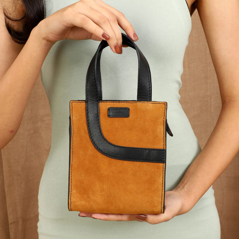 Crafted in amazing Hazel and Charcoal leather. Despite its petite size, this handbag doesnt skimp on features. The secure zipper closure ensures your belongings are safe, while the interior houses a zip pocket and a utility pocket. It offers enough space to carry select mobile phones, some currency, and your favourite lipstick.