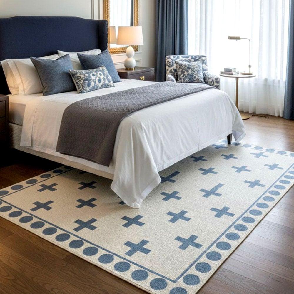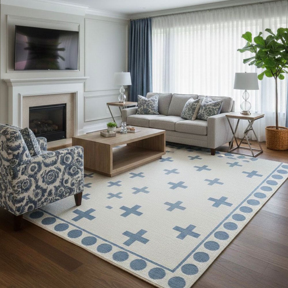 Vacuum gently and rotate the rug periodically to distribute wear evenly. Avoid direct sunlight and moisture, and have the rug professionally cleaned every two years to remove dirt and maintain its appearance.
