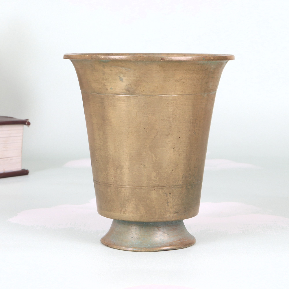 This vintage brass holy glass is a beautiful and functional piece that will elevate your devotional practice. Crafted from high-quality brass with an antique, burnished finish, it has a timeless, heirloom-quality look that will complement any decor. The weighted base keeps the glass steady, ensuring your candle will burn safely and consistently. Whether you're seeking to create a sacred space for personal prayer and meditation or want to add a touch of reverence to your place of worship, this holy glass is the perfect vessel. Its classic, understated design allows it to blend seamlessly into any environment, while its sturdy construction ensures it will withstand regular use for years to come. Light a candle within and let its gentle flame inspire your soul, reminding you to pause, reflect, and reconnect with what matters most.