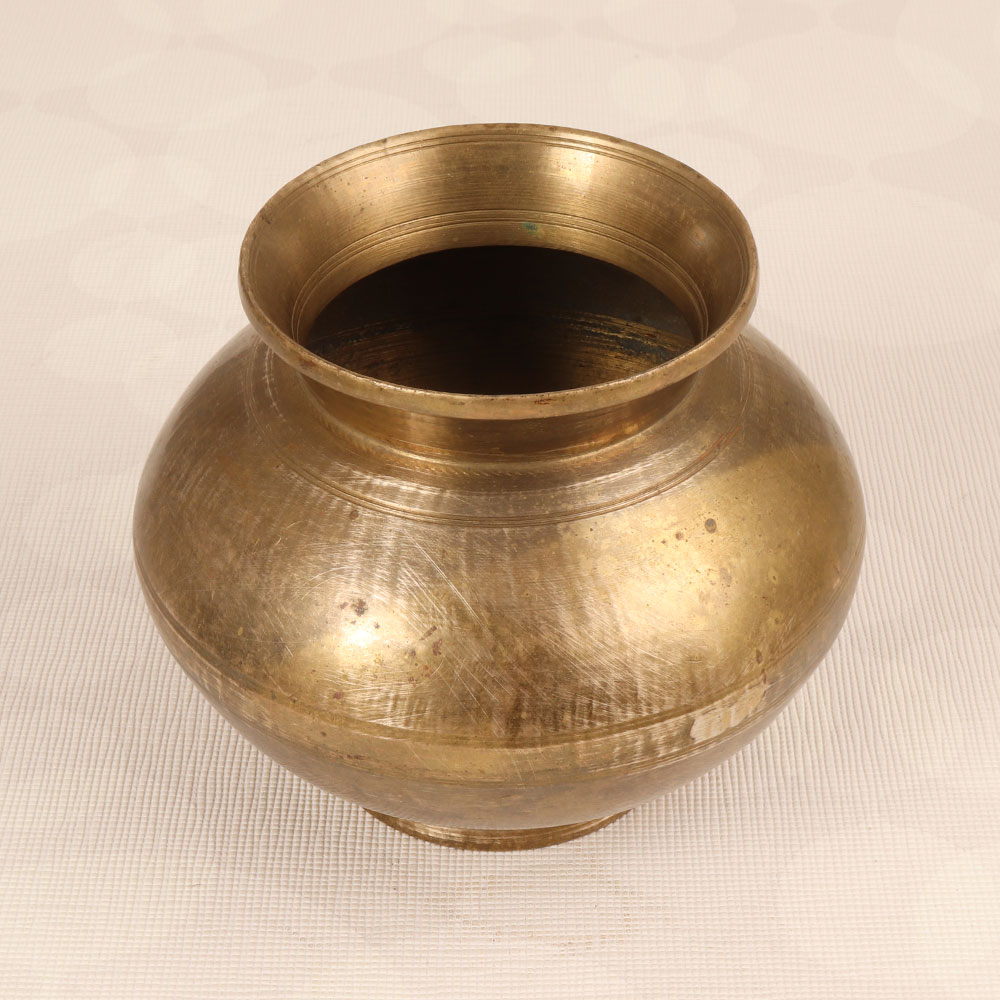 Decorate your home with the timeless charm of this Vintage Brass Holy Water Pot that is a testament to Indian craftsmanship and heritage. Meticulously handmade by professional artisans from Central India, this lota showcases exquisite artistry in every detail. Crafted from high-quality brass, its antique brown finish adds an authentic touch, creating an aura of vintage elegance. Versatile in its functionality, this pot seamlessly transitions from a sacred vessel for holy water during rituals and havans to a distinctive indoor flower pot. Its antique allure makes it a striking addition to home decor, offices, restaurants, hotels, or cafes, infusing any space with a touch of tradition. Embrace the rich cultural history and make it a centerpiece in your vintage collection, or present it as a thoughtful gift to loved ones during special, festive, or auspicious occasions.