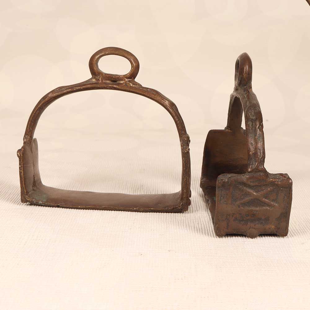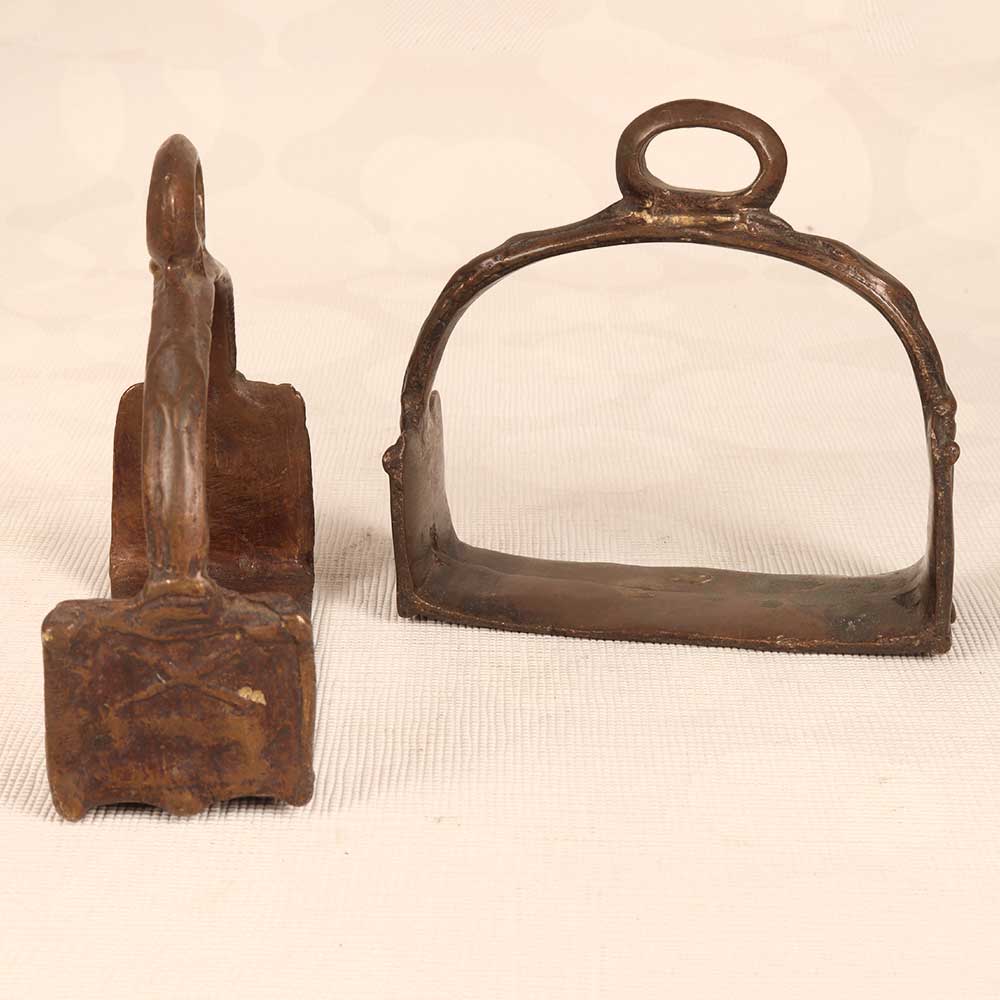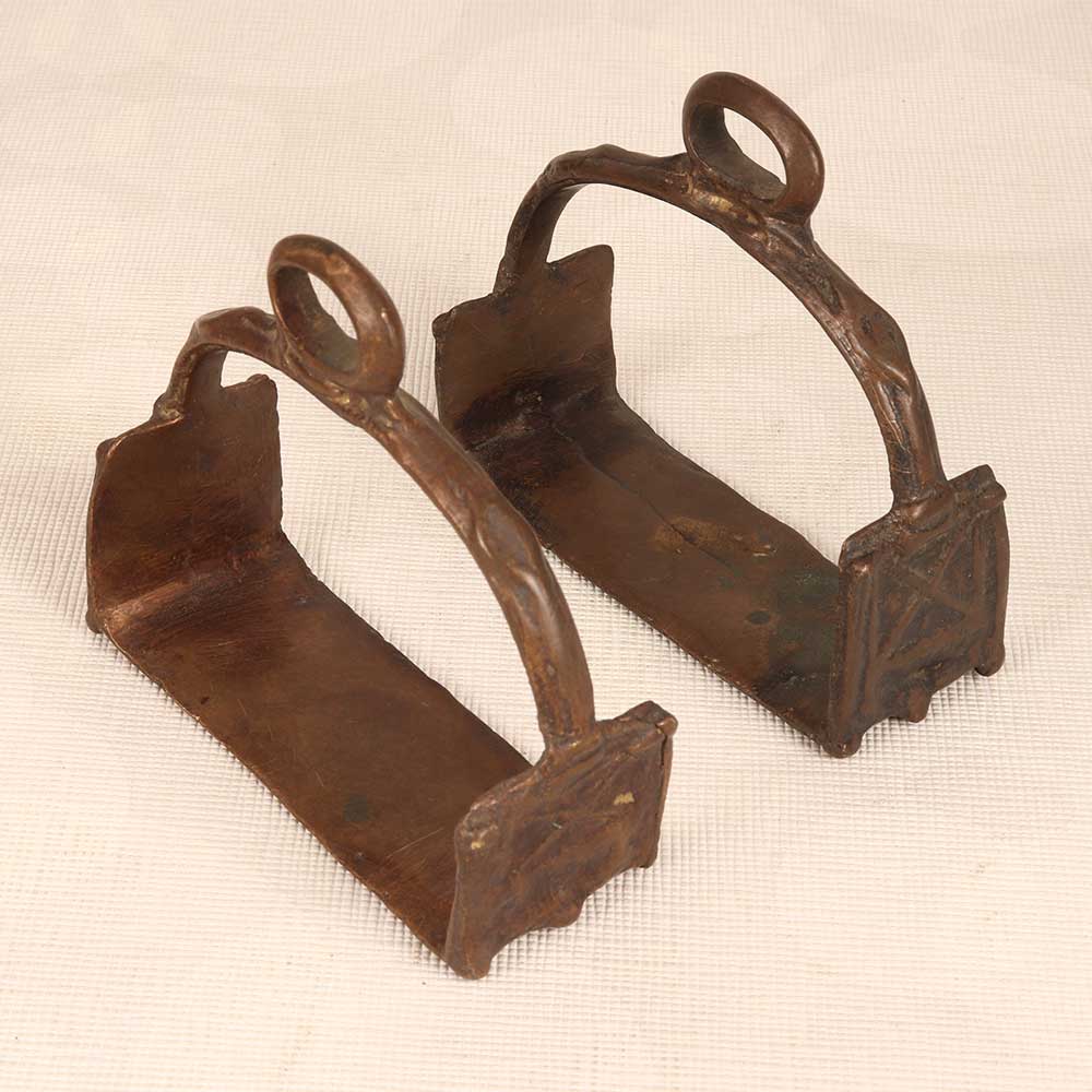 Take your horseback riding to a whole new level with these vintage brass horse stirrups. The gleaming brass finish and decorative side details add a touch of class and elegance to your riding gear. The solid brass construction ensures these stirrups will hold up to years of riding, keeping your feet secure in the saddle. The traditional design with wide treads gives you plenty of foot support and stability for all your riding adventures. For the equestrian who appreciates timeless style, these vintage brass stirrups are just what you need to elevate your look while staying protected in the saddle. The elegant brass finish is sure to turn heads on the trail or in the show ring. Give your trusty steed the royal treatment with these striking vintage brass stirrups.