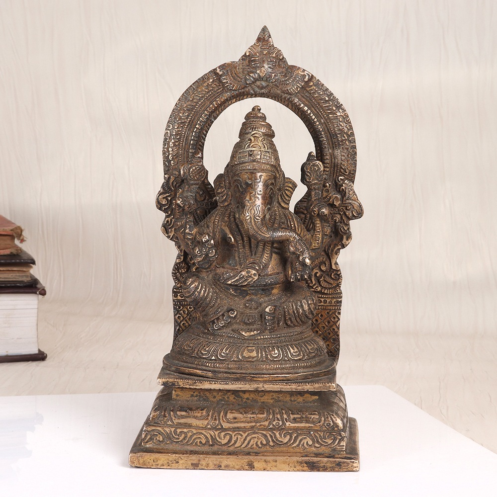 Bring the divine blessings of Lord Ganesha into your home with this stunning vintage brass statue. Crafted with exquisite detail, this iconic Hindu deity sits in a serene meditation pose, his elephant-like head radiating wisdom and his four arms signifying his divine powers. This breathtaking brass Ganesha statue is more than just a decorative piece - it's a powerful symbol of prosperity, wisdom, and good fortune. Revered as the remover of obstacles, Lord Ganesha is believed to bestow blessings and clear the path for new beginnings. Display this magnificent statue in your living room, office, or meditation space, and let its calming presence inspire you to overcome challenges and achieve your goals. Whether you're a devoted Hindu or simply appreciate fine craftsmanship and cultural art, this vintage Ganesha statue is a must-have addition to your home. Its timeless design and intrinsic spiritual significance make it a cherished keepsake that will be passed down for generations.