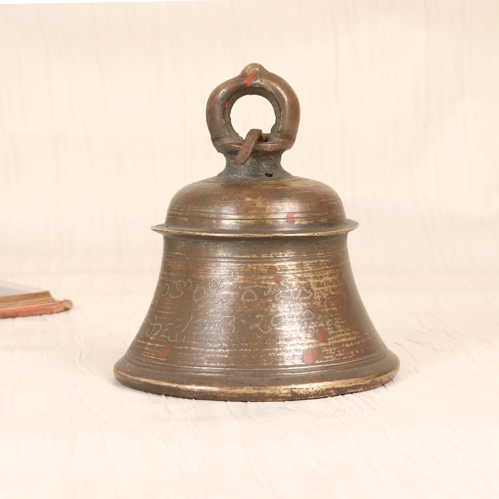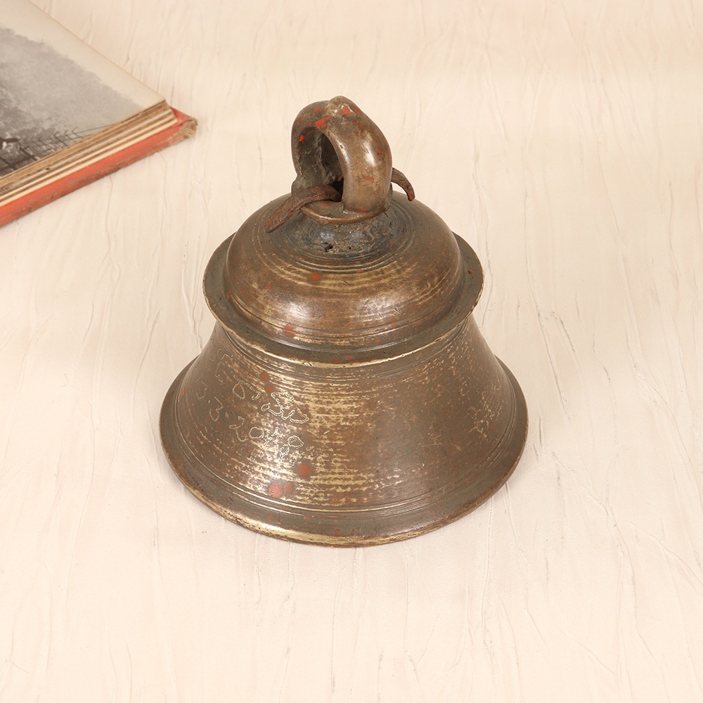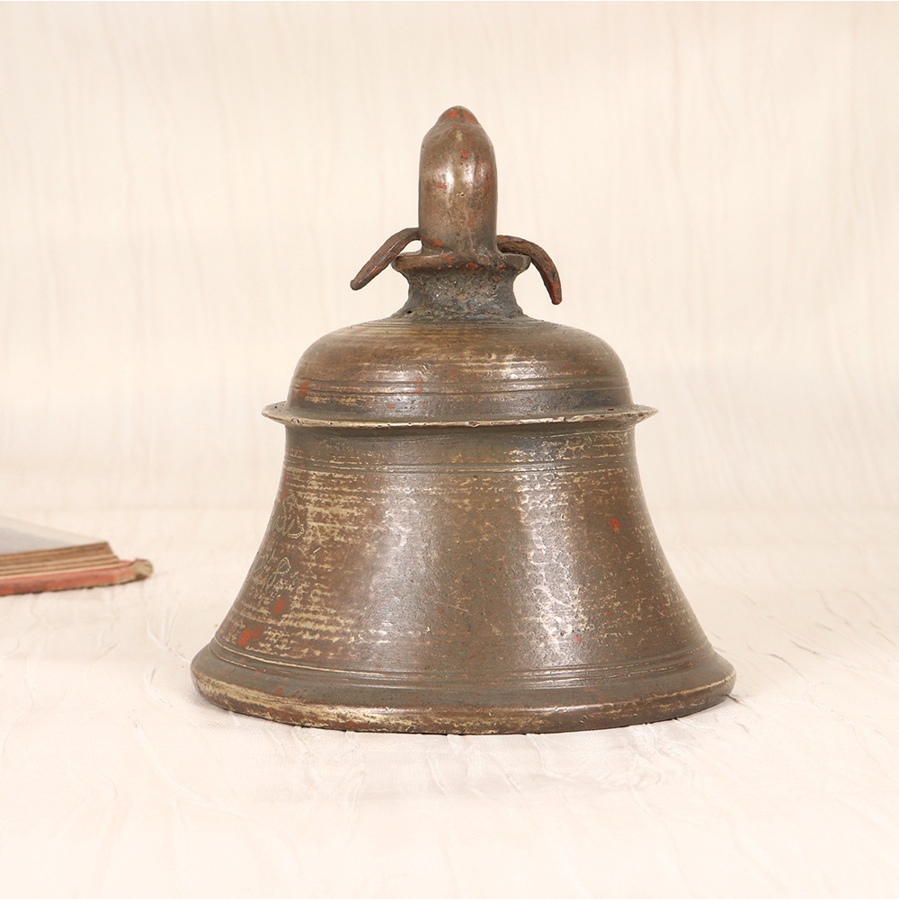 Imagine the tranquil melody of this vintage brass temple bell gently filling your space, transporting you to a serene oasis of calm. Crafted by skilled artisans in the heart of Central India, this stunning piece showcases the timeless beauty and craftsmanship of the region. Forged from solid brass, it boasts exceptional durability that will withstand the test of time. The loop at the top allows you to easily hang this bell in any room, garden, or sacred space, inviting the soothing chime to permeate your environment. Whether you use it for meditation, prayer, or simply to create an atmosphere of peace, this temple bell will become a cherished centerpiece that elevates your living or work space. Perfect for the spiritually-inclined or those seeking to infuse their home with a sense of grounding and harmony, this vintage brass bell is a must-have accessory. Its restorative tones will help you unwind after a long day, clear your mind, and cultivate a deeper connection to the present moment. Embrace the ancient wisdom of this timeless piece and let its enchanting sound transform your daily life.