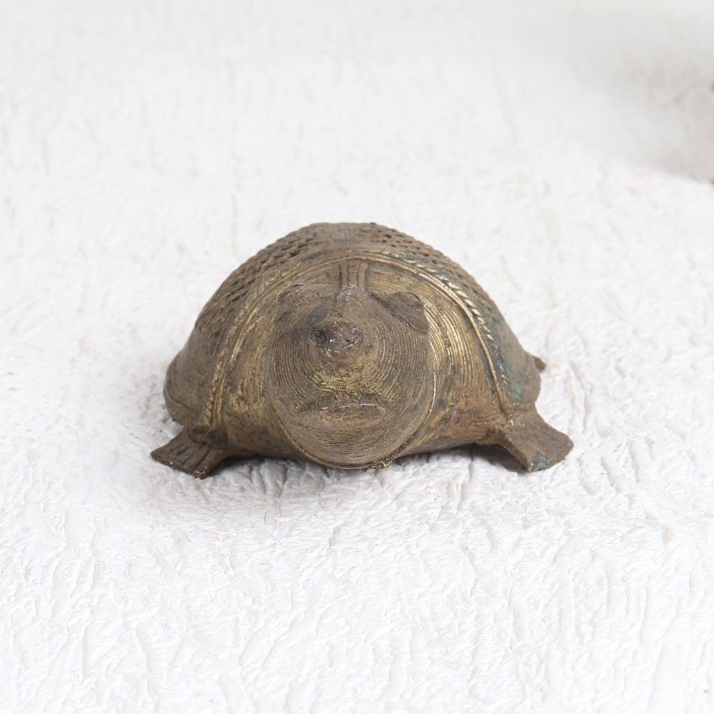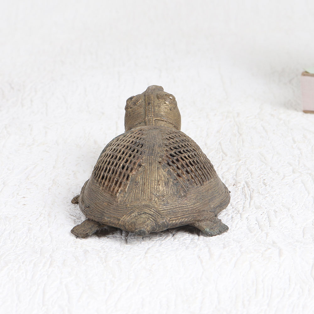 Buy a Brass Turtle Statue featuring intricate jali work and get a hassle free delivery at your doorstep. This masterpiece is crafted by highly talented Indian artisans which showcases a stunning antique brown finish that adds a touch of vintage charm to any space. Handmade with precision and crafted from high-quality brass, this turtle statue is a testament to the rich craftsmanship of India. Its intricate jali work is a traditional Indian art form of creating delicate perforations that adds an air of sophistication to the piece. Versatile in its application, this statue is a perfect addition to your home, office, restaurant, hotel, cafe, or shop. It effortlessly blends with various decor styles, making it a versatile choice for decoration. Place it on a table top, shelf, or mantelpiece to instantly elevate the ambiance. Furthermore, this brass turtle statue makes for a remarkable addition to your vintage collection or a captivating exhibit piece at special events. It's also an ideal gift option to express your love and wishes during special, festive, or auspicious occasions.