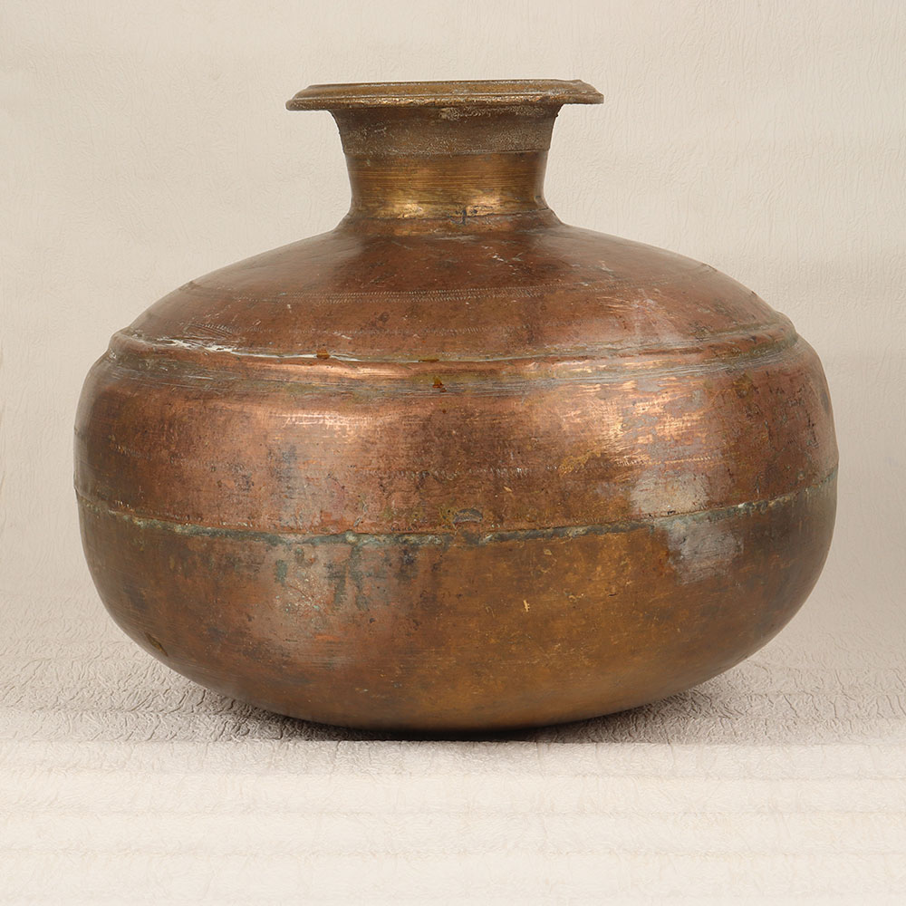 Enhance your space with the timeless elegance of this exquisite Vintage Brass Water Pot which is a masterpiece crafted by highly skilled Indian artisans in the Himalayan Art tradition. Made from high-quality brass, this unique piece boasts a small mouth and an antique brown finish, reflecting the artistry and craftsmanship of a bygone era. The pot's intricate design and handmade detailing make it a perfect addition to any setting, whether it be at home, in your office, a restaurant, hotel, or cafe. Its versatility extends beyond a mere decorative item, as it doubles as an indoor flower pot, adding a touch of nature's beauty to your surroundings. This vintage brass water pot is not just a decorative piece but a conversation starter, making it an ideal addition to any vintage collection. The rich heritage embedded in its design resonates with the cultural significance of Himalayan craftsmanship. Furthermore, it serves as a thoughtful and meaningful gift for your loved ones on special, festive, or auspicious occasions, encapsulating the spirit of tradition and artistry within a single, beautifully crafted piece.