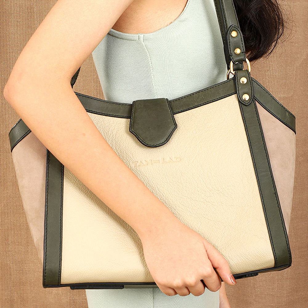 Crafted in gorgeous Honey Dew, Dove and Jungle leather, this tote is secured with a sleek magnetic loop closure and comfortably fits laptops up to 13 inches. Beyond the laptop compartment, it offers ample space for your diary, notebook, documents, and other office essentials, ensuring to be your ideal daily companion.
