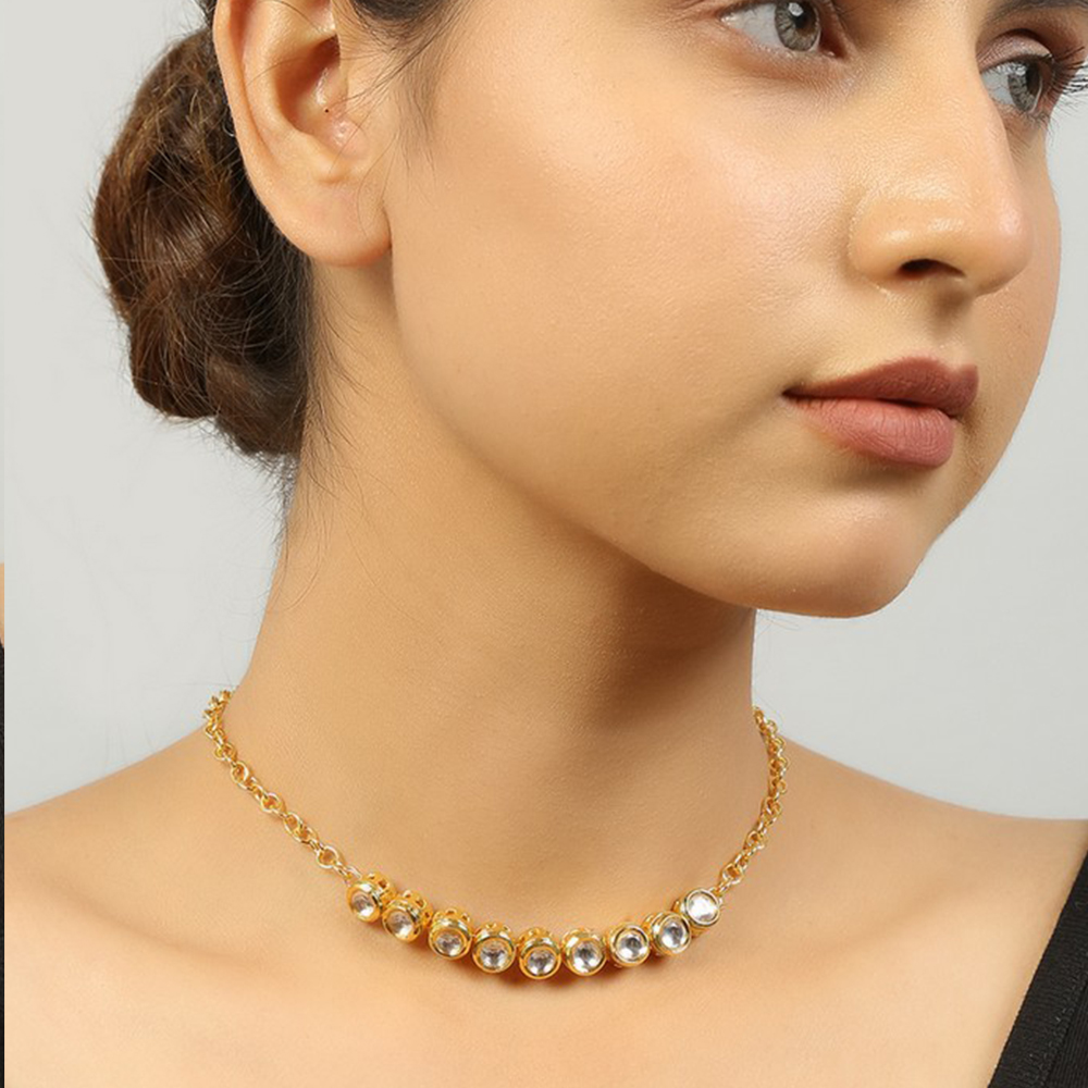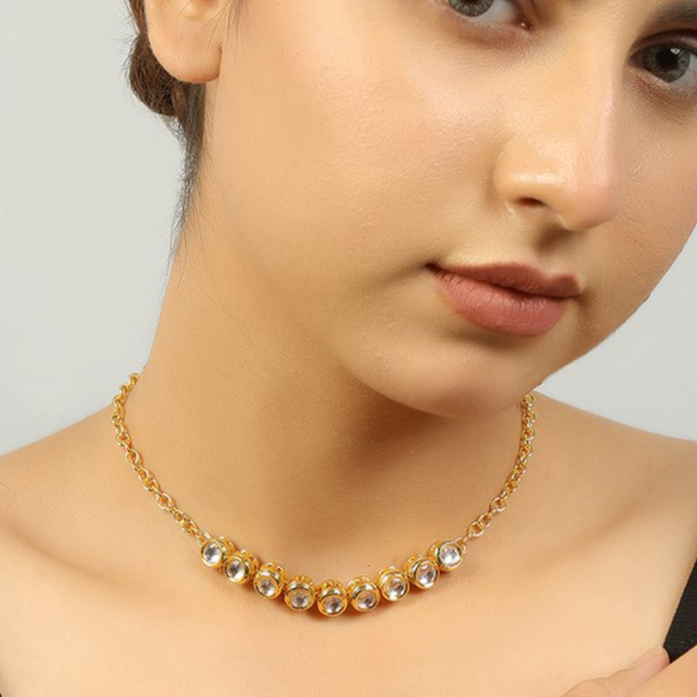 Celebrate individuality with our handcrafted Kundan Circle Necklace & Earring Set. Featuring a row of round kundan stones set in a gold tone with matching earrings, this elegant set is perfect for bridal ensembles, festive occasions, and meaningful gifting. Packed & quality-checked by Indianshelf.