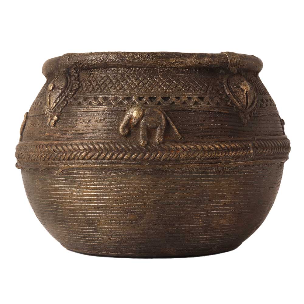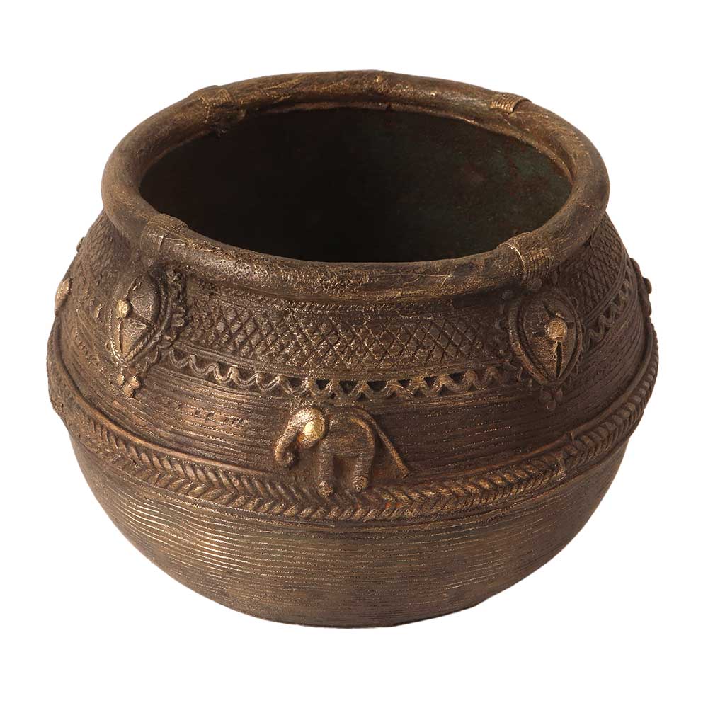 A handmade rice measurement or mana bowl to decorate your home, office, restaurant, hotel or cafe. Buy this rice measurement bowl engraved with alluring motifs and elephants to add a charming flair to the decoration. This pital ka lota is handcrafted by skilled artisans using ancient methods from the best brass available in the market. A beautiful collectible for your vintage art collection. This embellished brass bowl is a must have in your vintage art collection. Nowadays it is a trendy artefact for home, office, restaurant and hotel decoration and is loved by visitors. Gift this bowl to your loved ones on special or festive occasions.