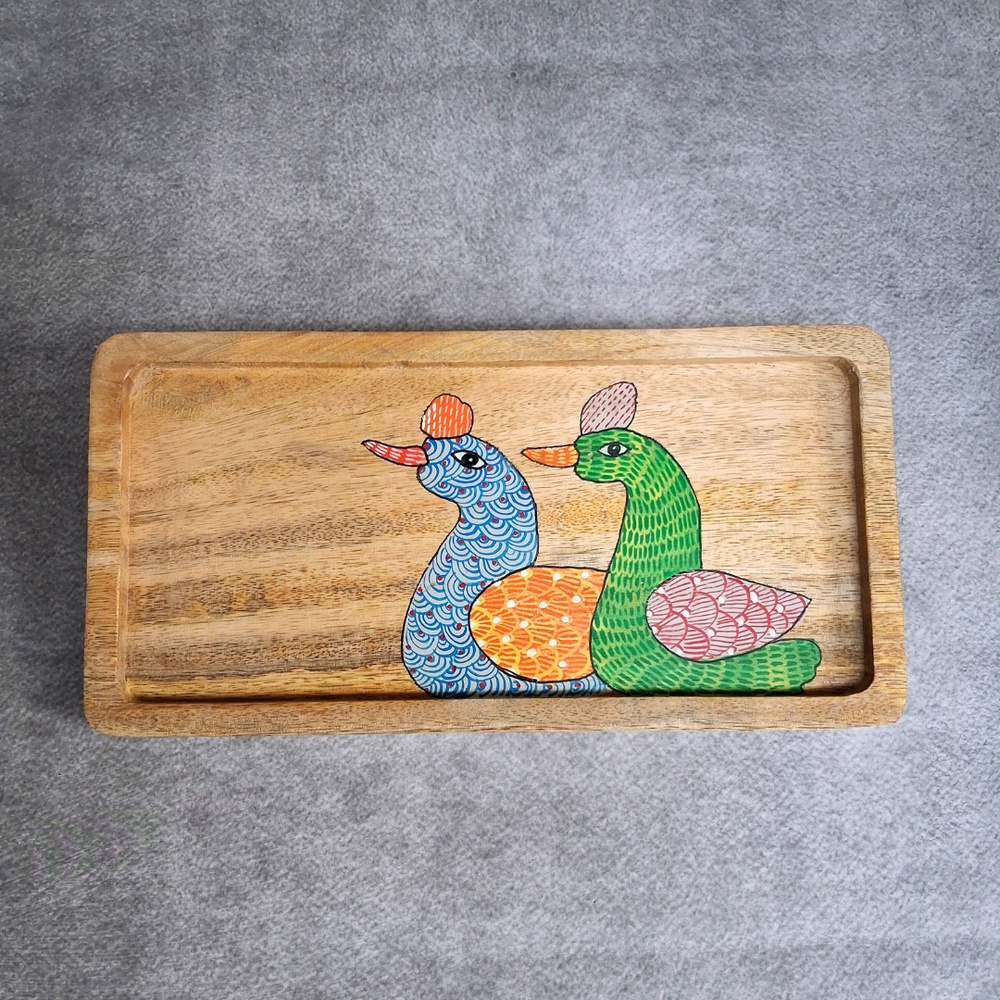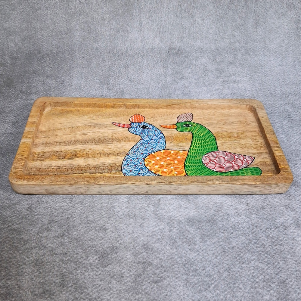 This handcrafted mango wood bird hand painted tray combines vibrant artistry with practical functionality. Featuring a colorful dual bird motif on a natural wooden surface, this tray adds a playful yet elegant touch to everyday serving and home decor.